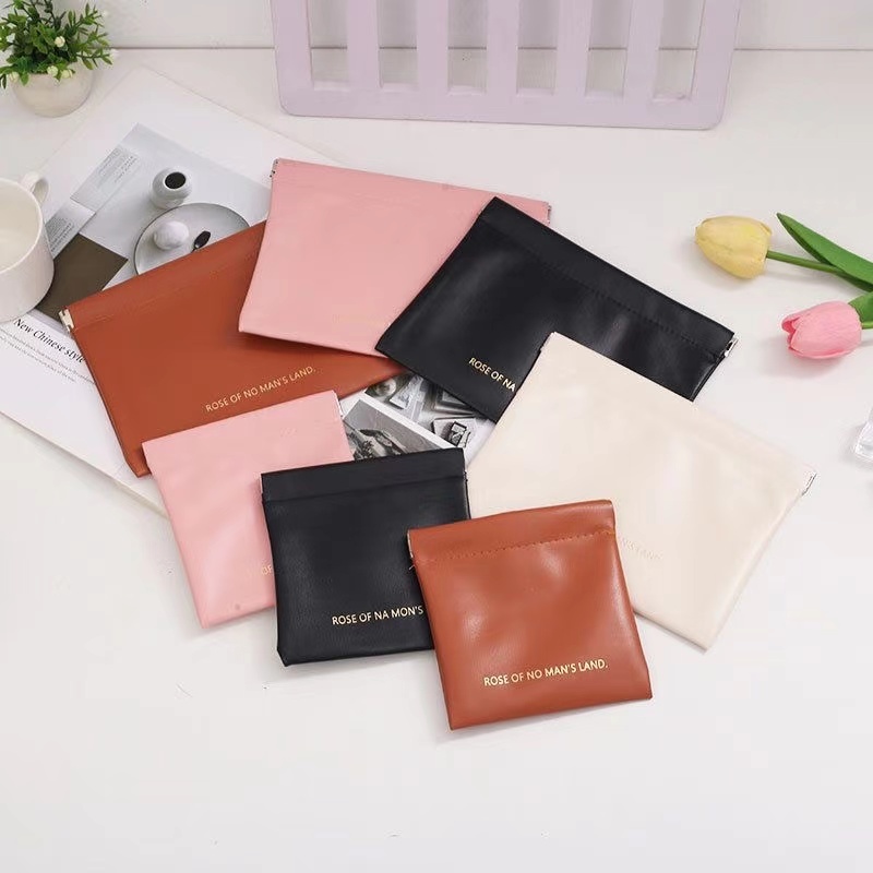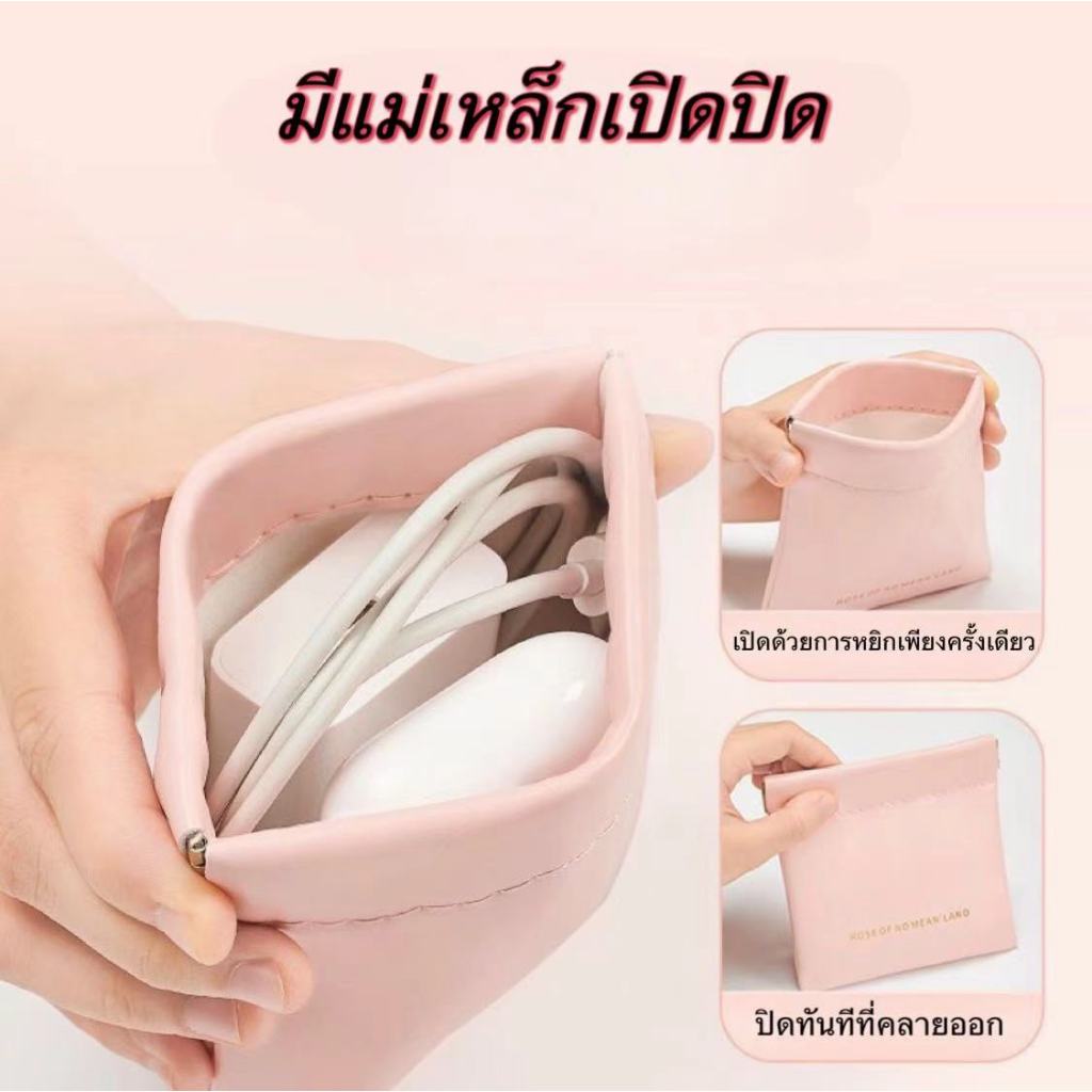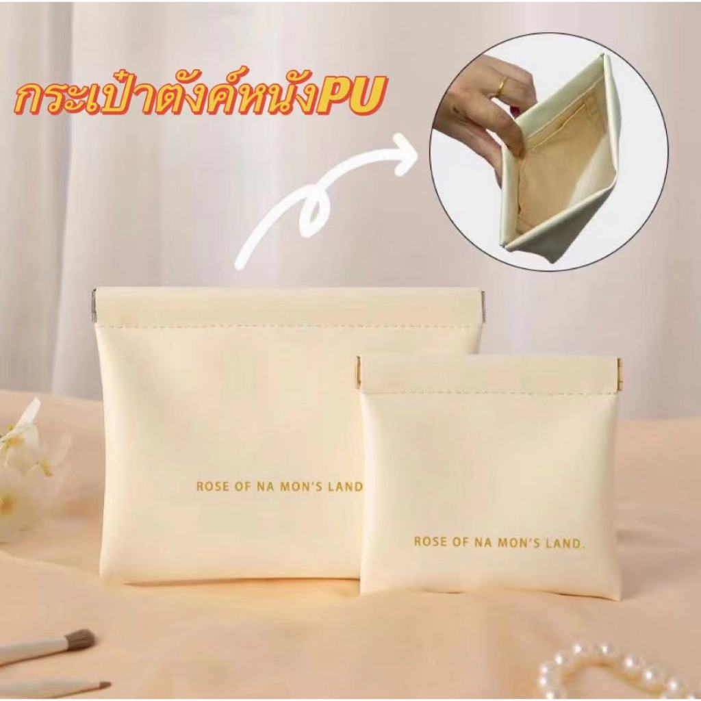 กระเป๋าตังค์หนังPU กระเป๋าใส่เหรียญ ช่องเก็บของปิดอัตโนมัติ แบบพกพา เก็บเหรียญ กุญแจ หูฟัง ลิปสติก รอ