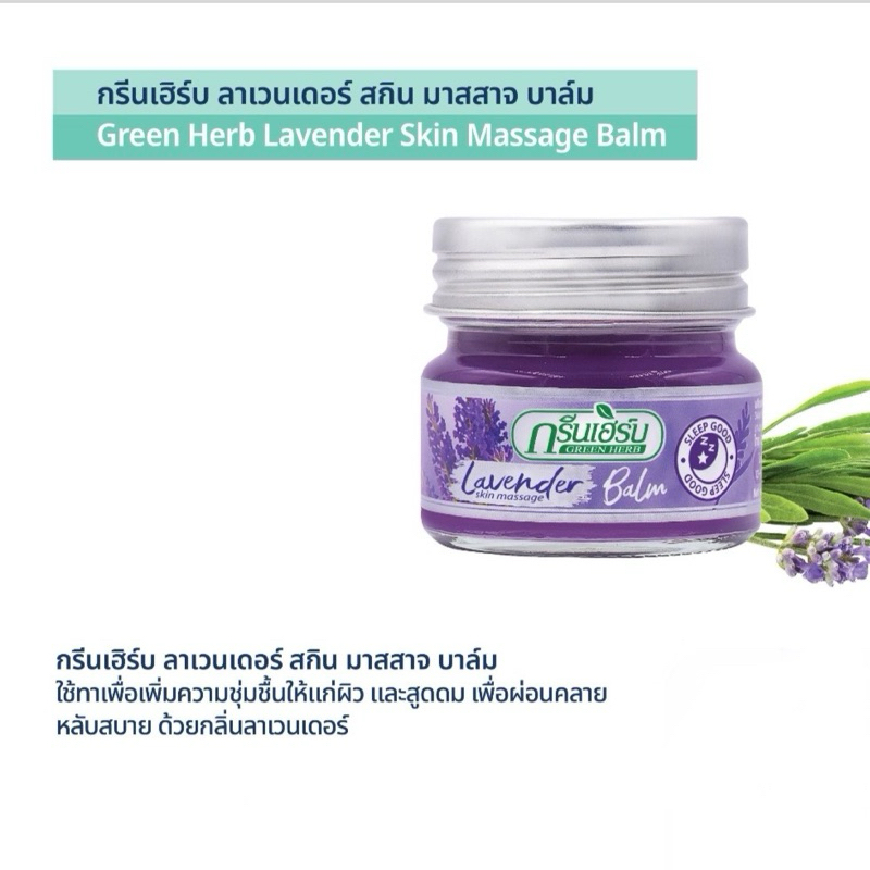 ยาหม่อง Green Herb กรีนเฮิร์บ 20g. Lavender Balm กลิ่นลาเวนเดอร์ //พังพอน /ไพลสด /ตะไคร้กันยุง