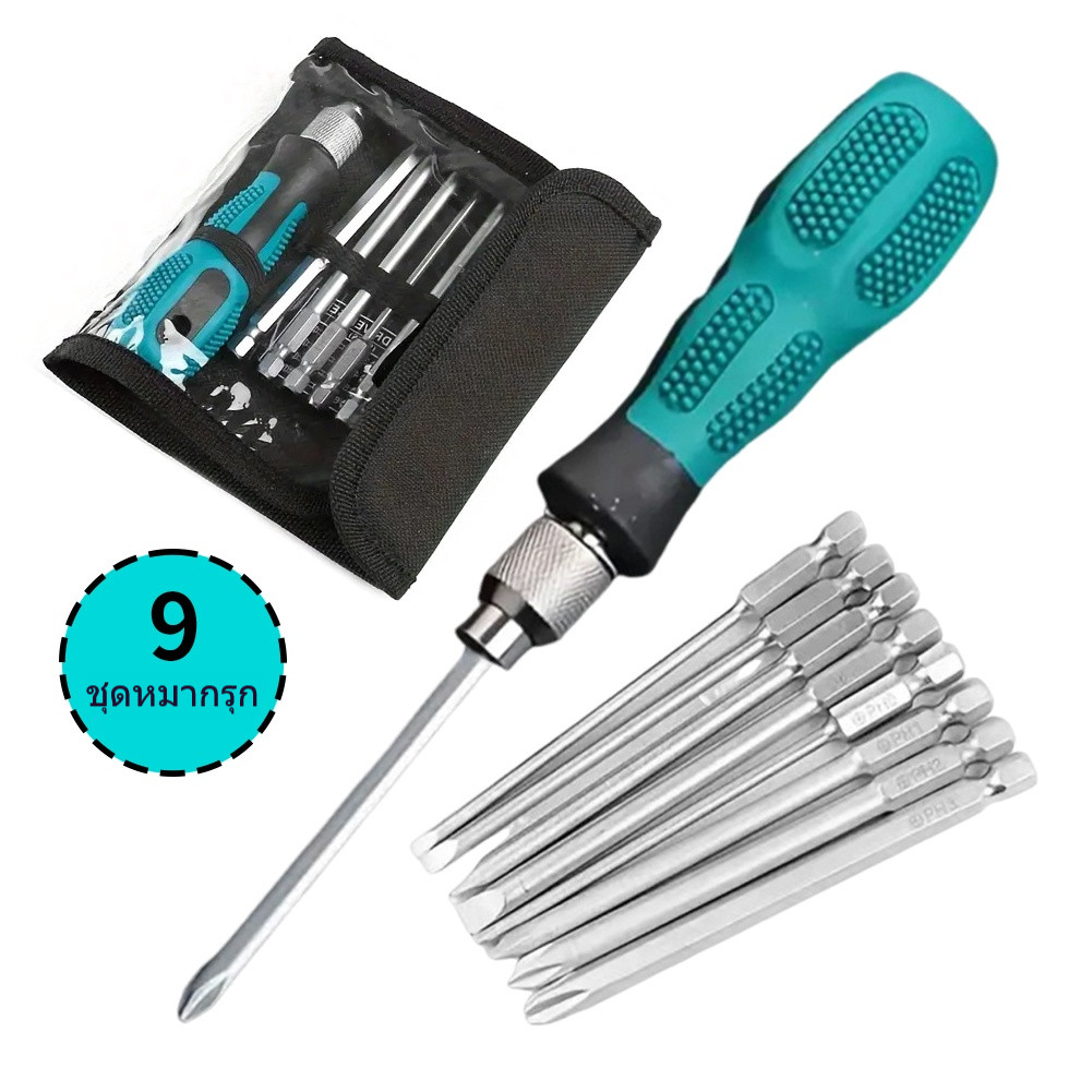 ชุดไขควงช่าง phillips slotted set 9 ชิ้น ไขควงชุด ไขควงปลายแม่เหล็ก ไขควง ชุดเครื่องมือเครื่องมือบำรุงรักษาถอดชิ้น