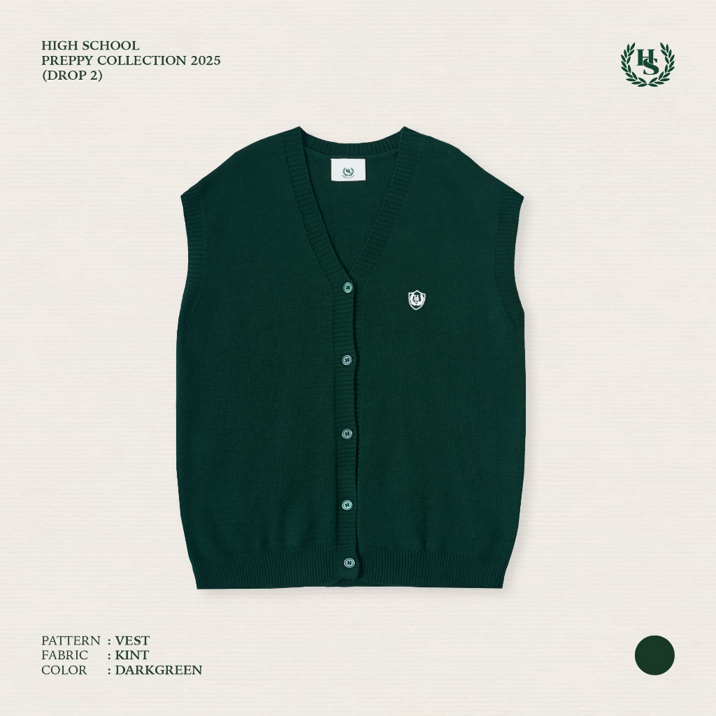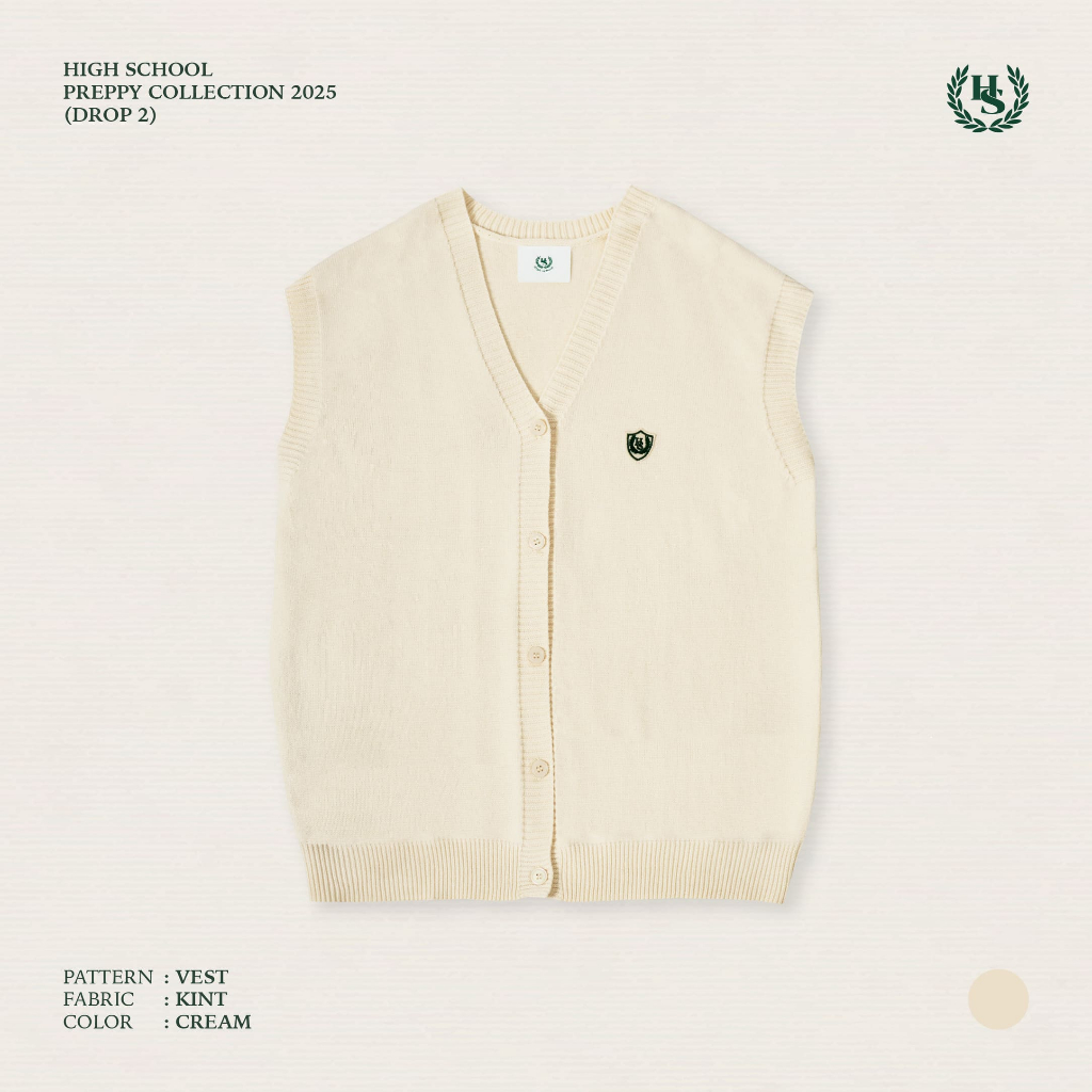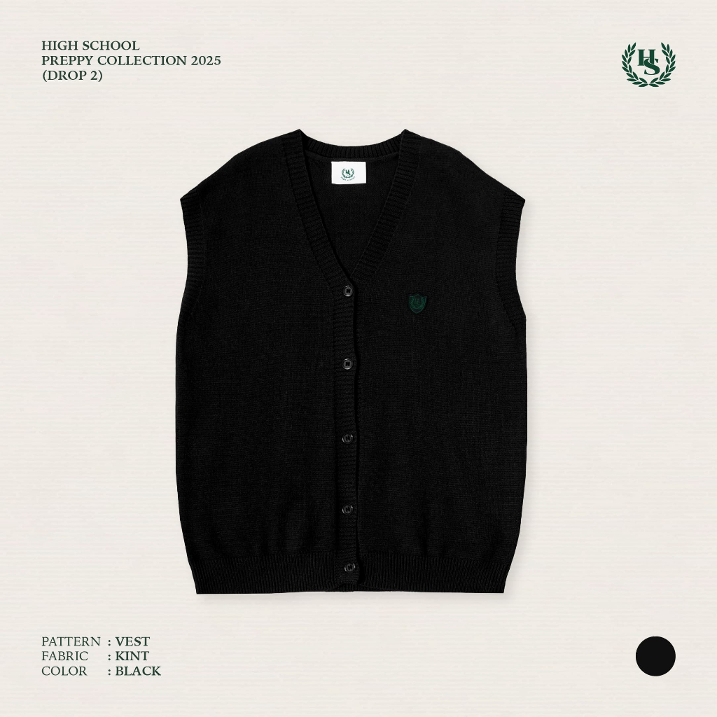 High school Collection Class IV knit vest เสื้อไหมพรม คอวี แมตช์ง่าย ใส่เที่ยว ผ้าไม่ร้อน เรียบหรูสไตล์มินิมอลจากแบรนด์ High School ใส่ง่าย แมตช์ได้กับทุกลุค พร้อมดีเทลปักโลโก้ "High School" เล็ก ๆ ที่อกซ้าย เพิ่มความเท่แบบไม่ซ้ำใคร