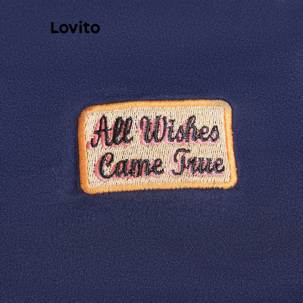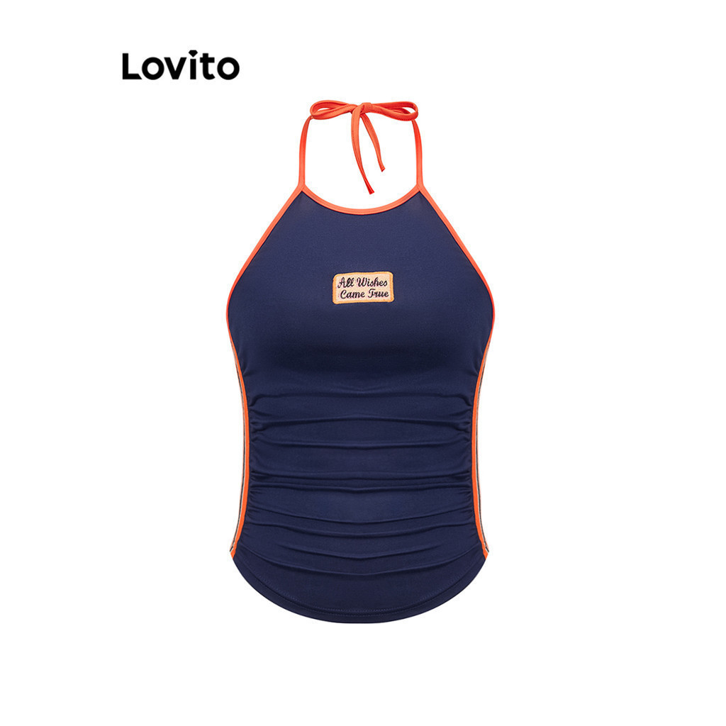 Lovito เสื้อกล้ามลําลองจดหมายคมชัดผูกพันเทปเย็บปักถักร้อยเสื้อกล้ามสําหรับผู้หญิง L93AD011
