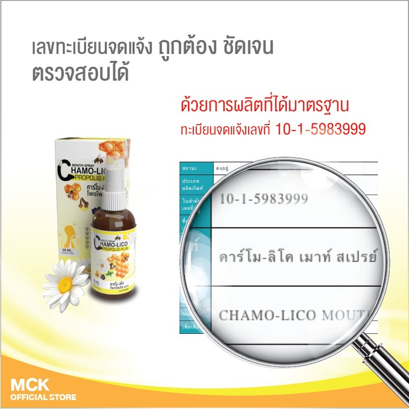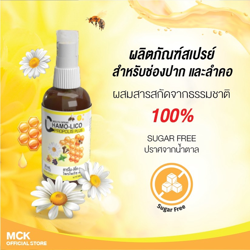 Chamo-lico propolis plus คาร์โม ลิโค โพรโพลิซ พลัส เม้าส์สเปรย์ ผลิตภัณฑ์ดูแลช่องปากและลำคอ สเปรย์แก้ไอ เสมหะ เจ็บคอ