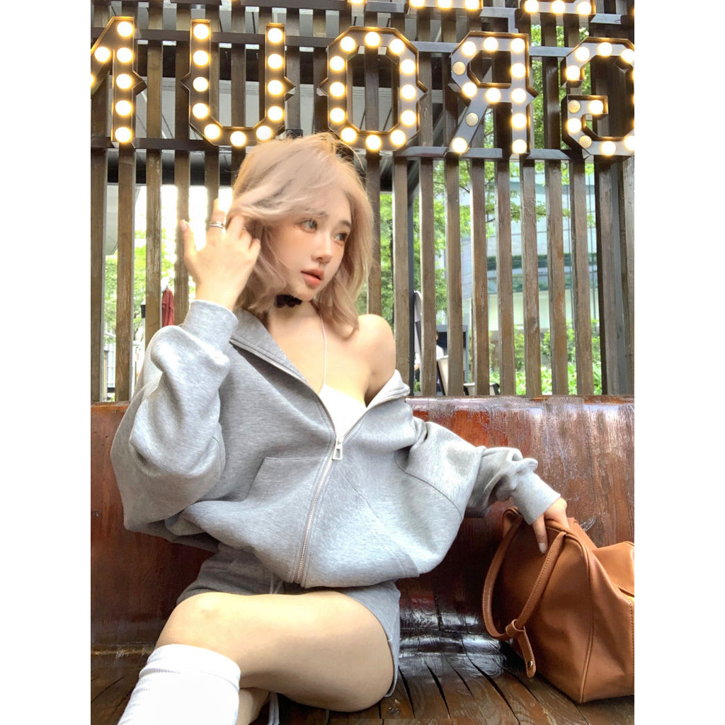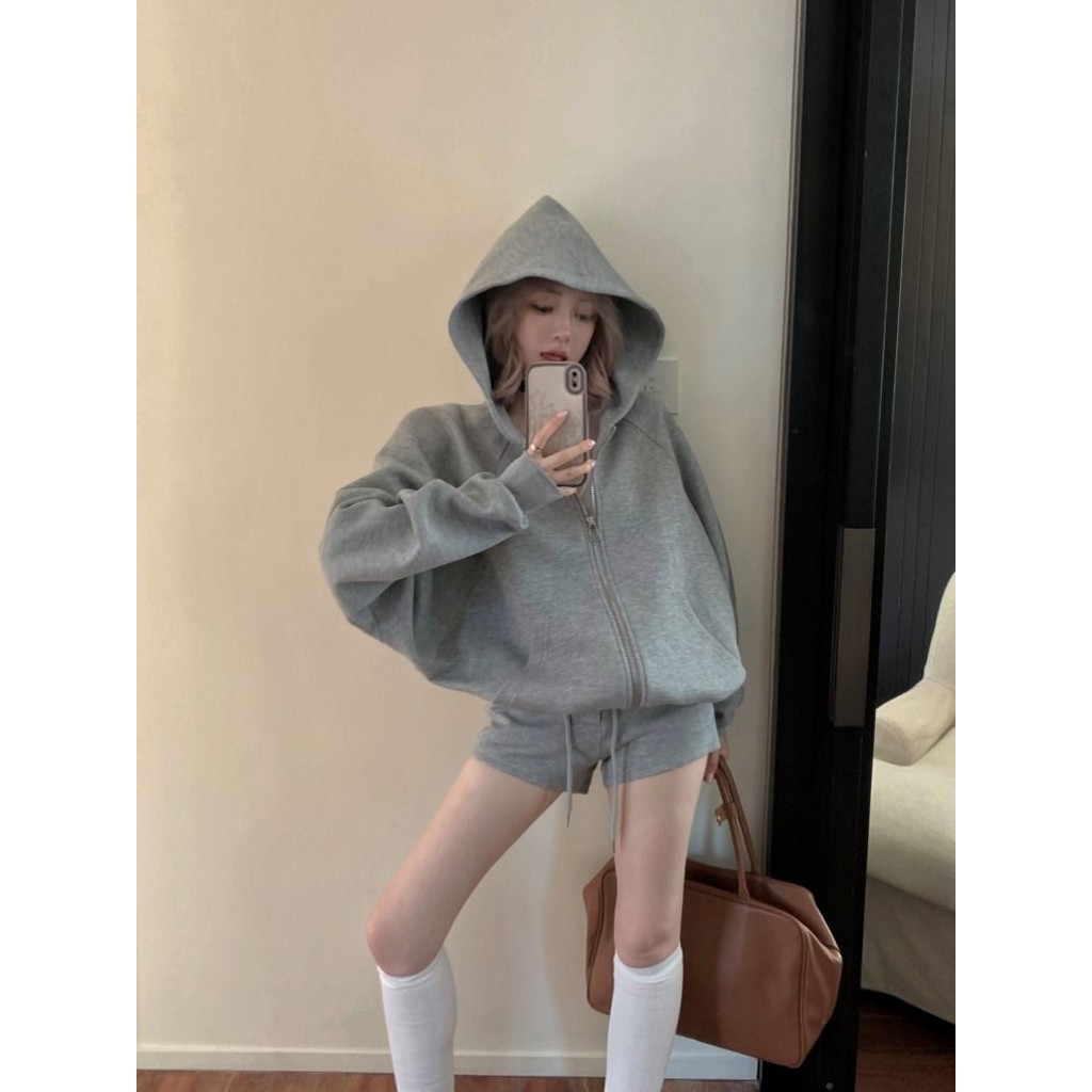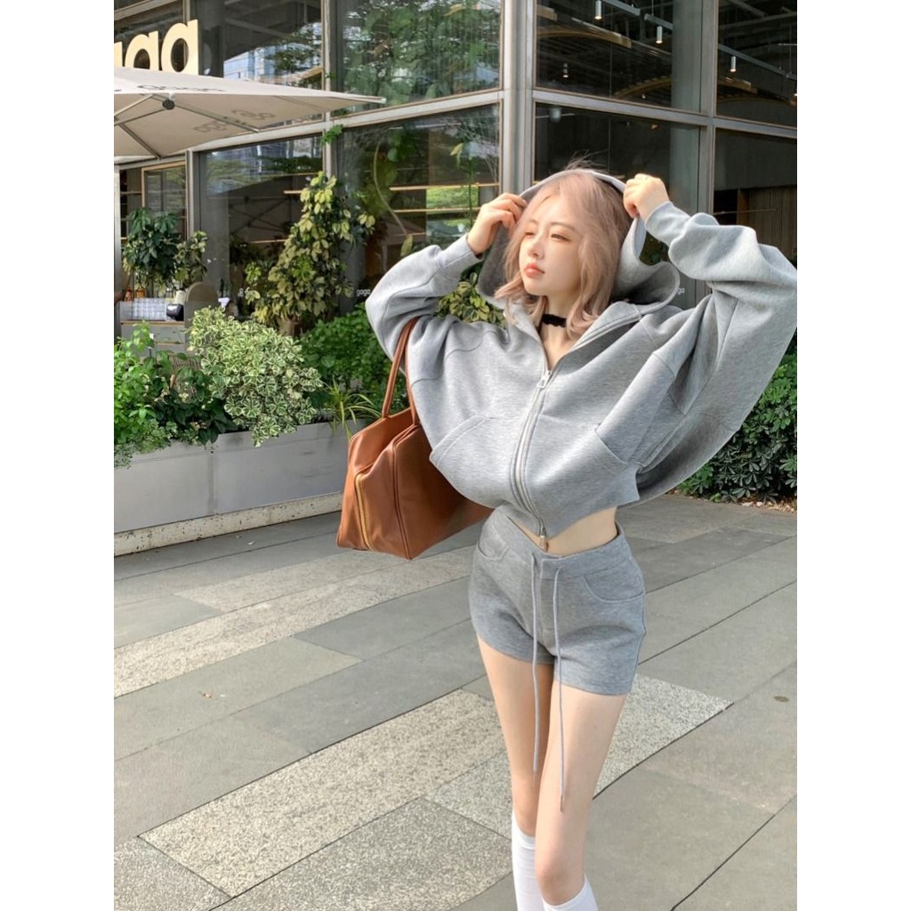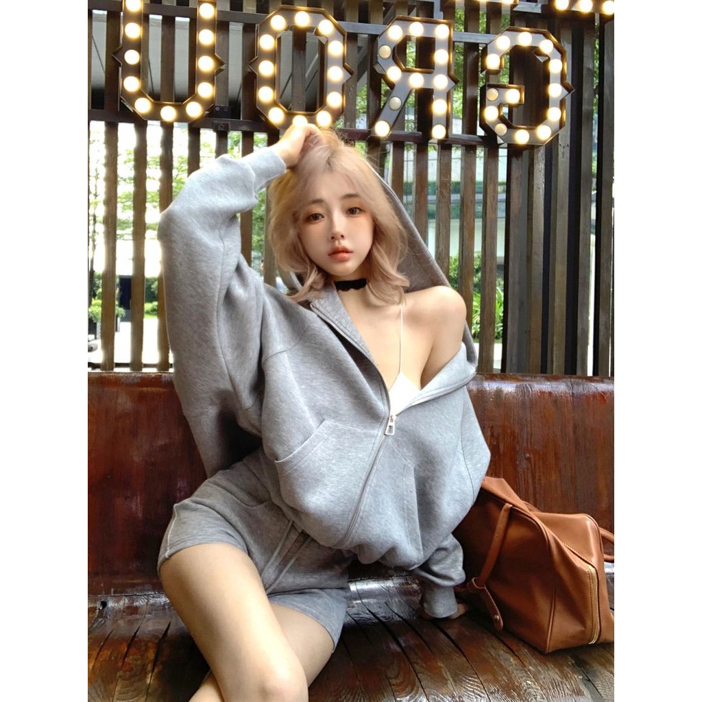 สูทผู้หญิงเสื้อคลุมด้วยผ้าสบายๆ+กางเกงขาสั้นเอวสูงตรงชุดสองชิ้น