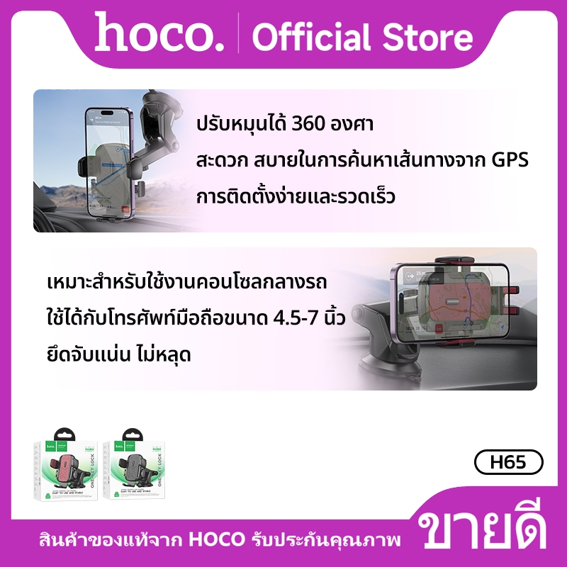 ที่จับโทรศัพท์สำหรับรถยนต์ ปรับได้ 360องศา ยึดจับมั่นคง Center console คุณภาพดี HOCO H65