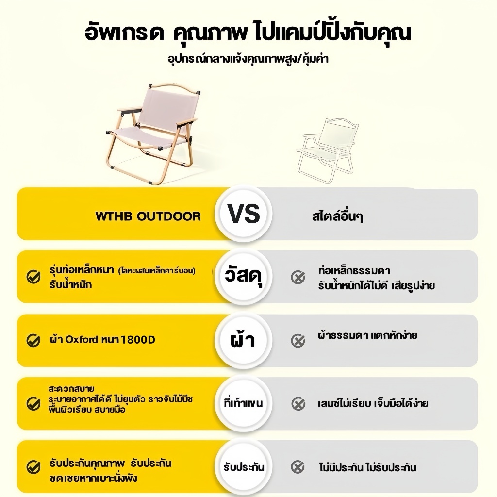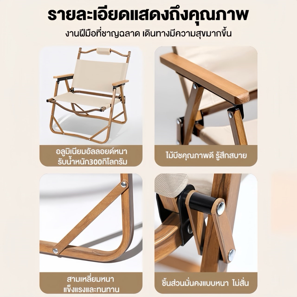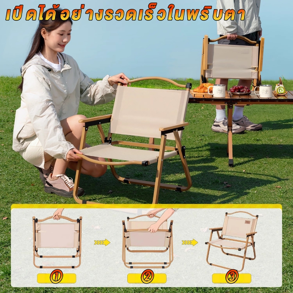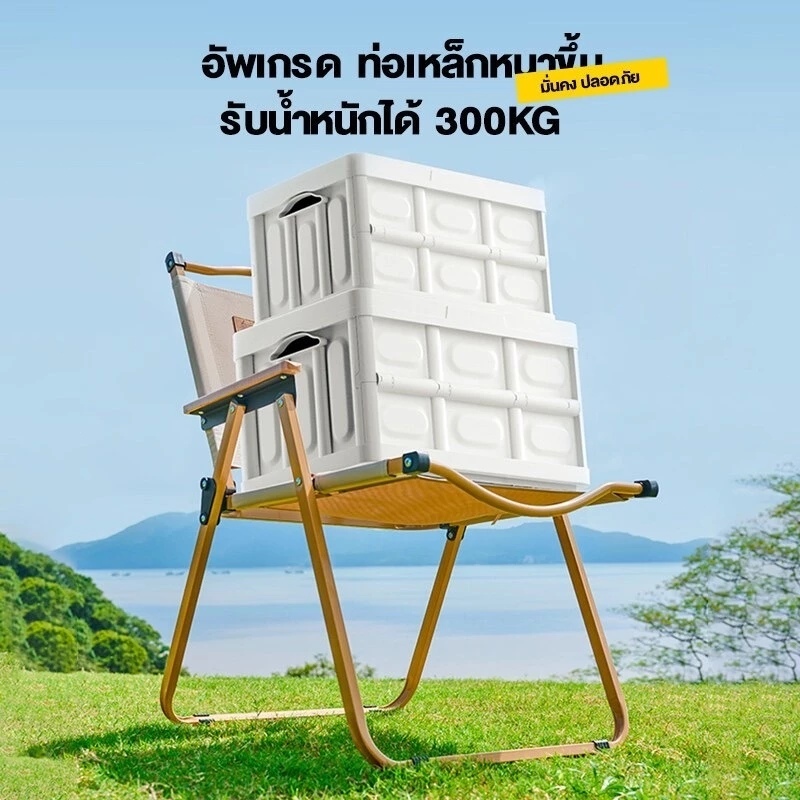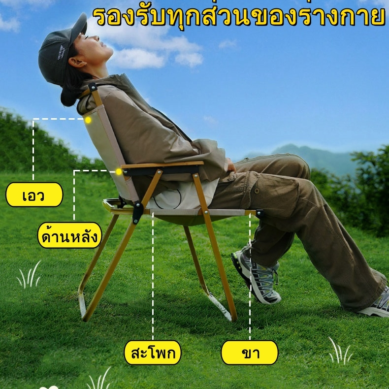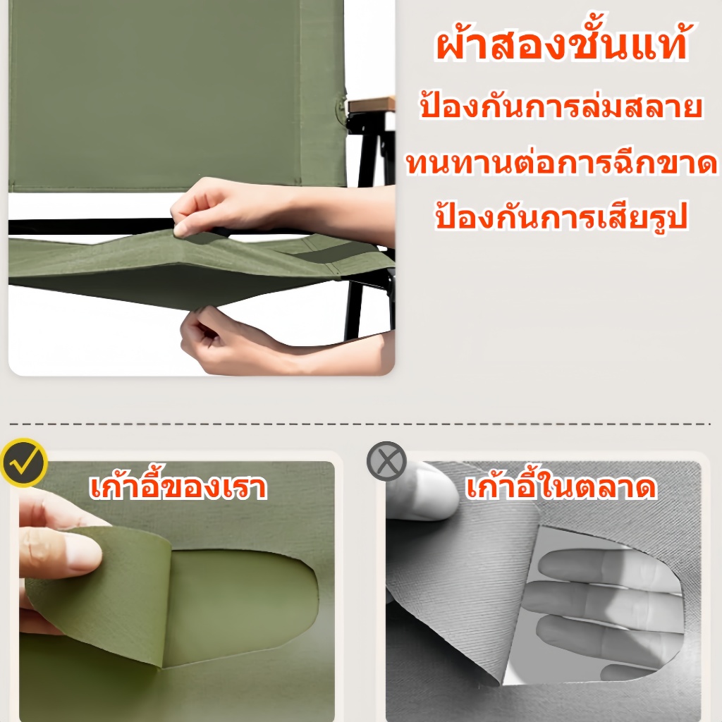 เก้าอี้แคมป์ปิ้ง เก้าอี้พับได้ ปิคนิคกลางแจ้ง พกพาสะดวก สีกากี รับน้ำหนักได้ 350กก【รับประกัน10ปี】
