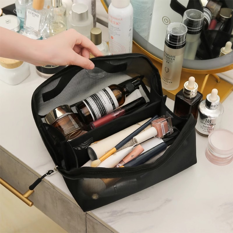 กระเป๋าเก็บของเหล่านี้มีน้ำหนักเบาและทำจากผ้าเนื้อดีทั้งด้านในและด้านนอก พวกมันสามารถใส่ของใช้ความงามได้มากมาย เช่น ลิปสติก แป้งหน้า บลัชออน และแปรงแต่งหน้าขนาดเล็กถึงขนาดกลาง