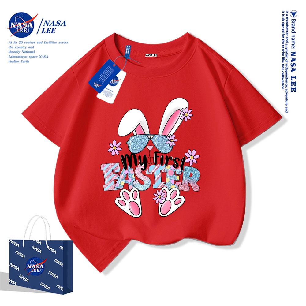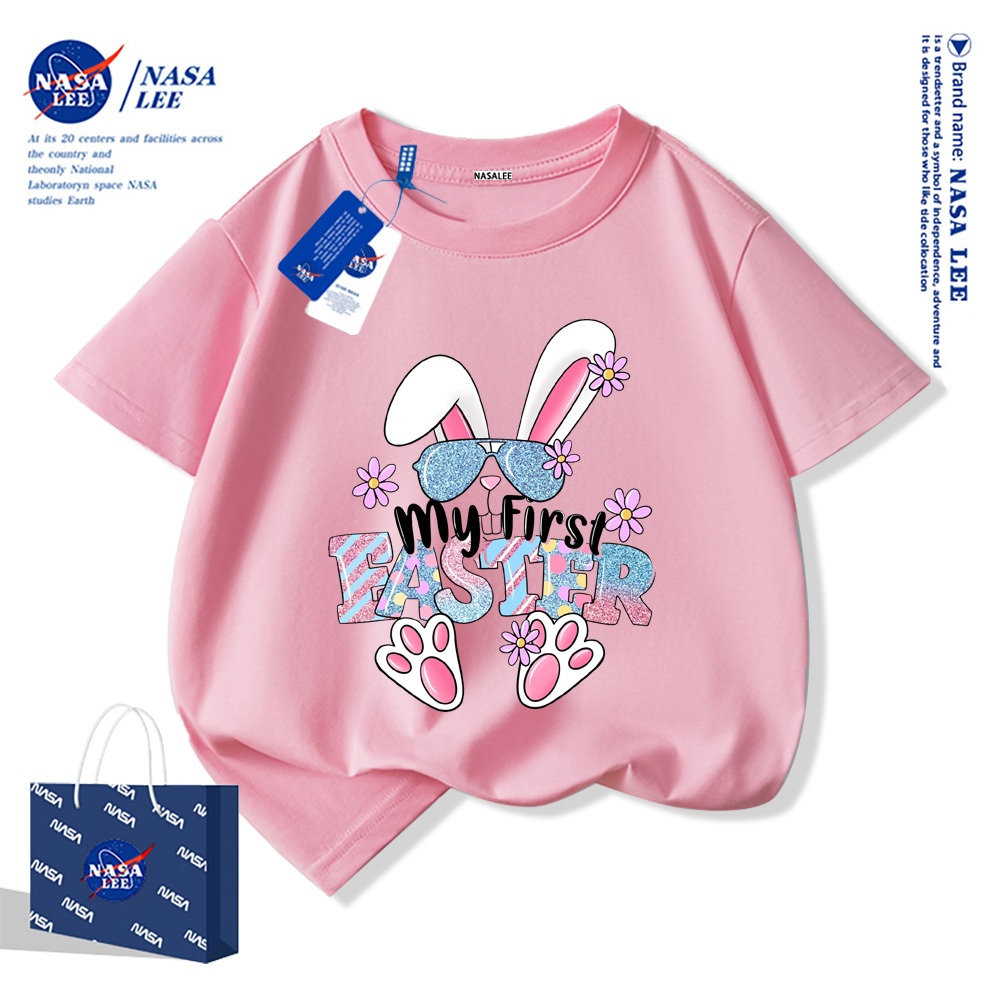 2025สินค้าใหม่! เสื้อยืดแขนสั้นสำหรับเด็กNASAสบายและนุ่ม ผ้าฝ้ายแท้ 100% ลายการ์ตูนกระต่าย