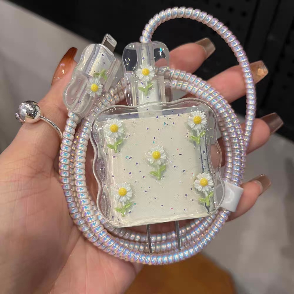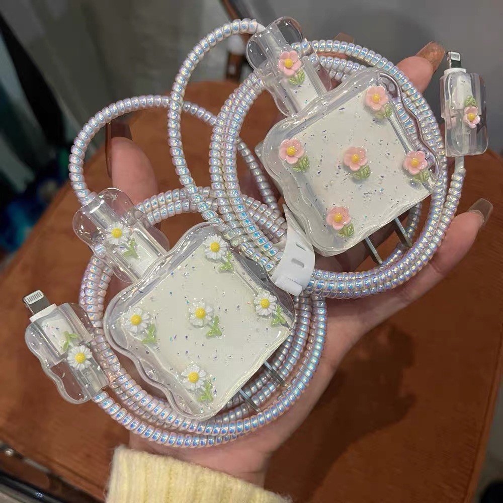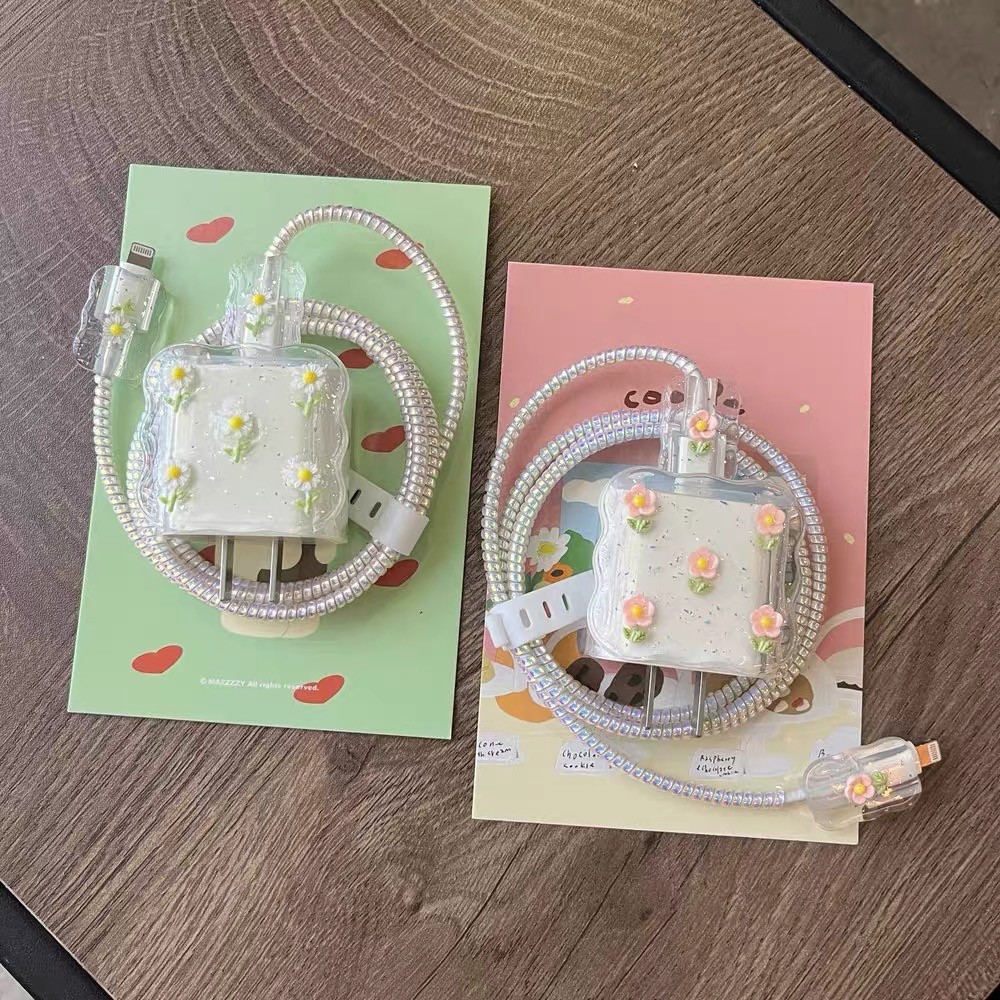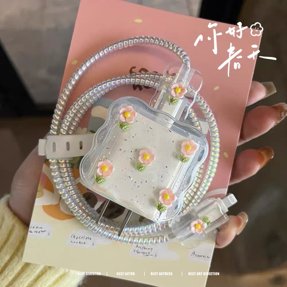 ใหม่Joymow Charger Protectors ฤดูใบไม้ผลิดอกไม้ Charger Case Anti-breaking Cable Protectors สําหรับ iPhone 16promax/13/15promax 18/20w Charger