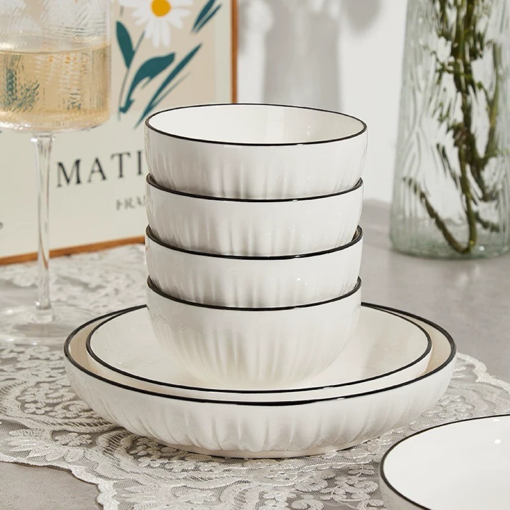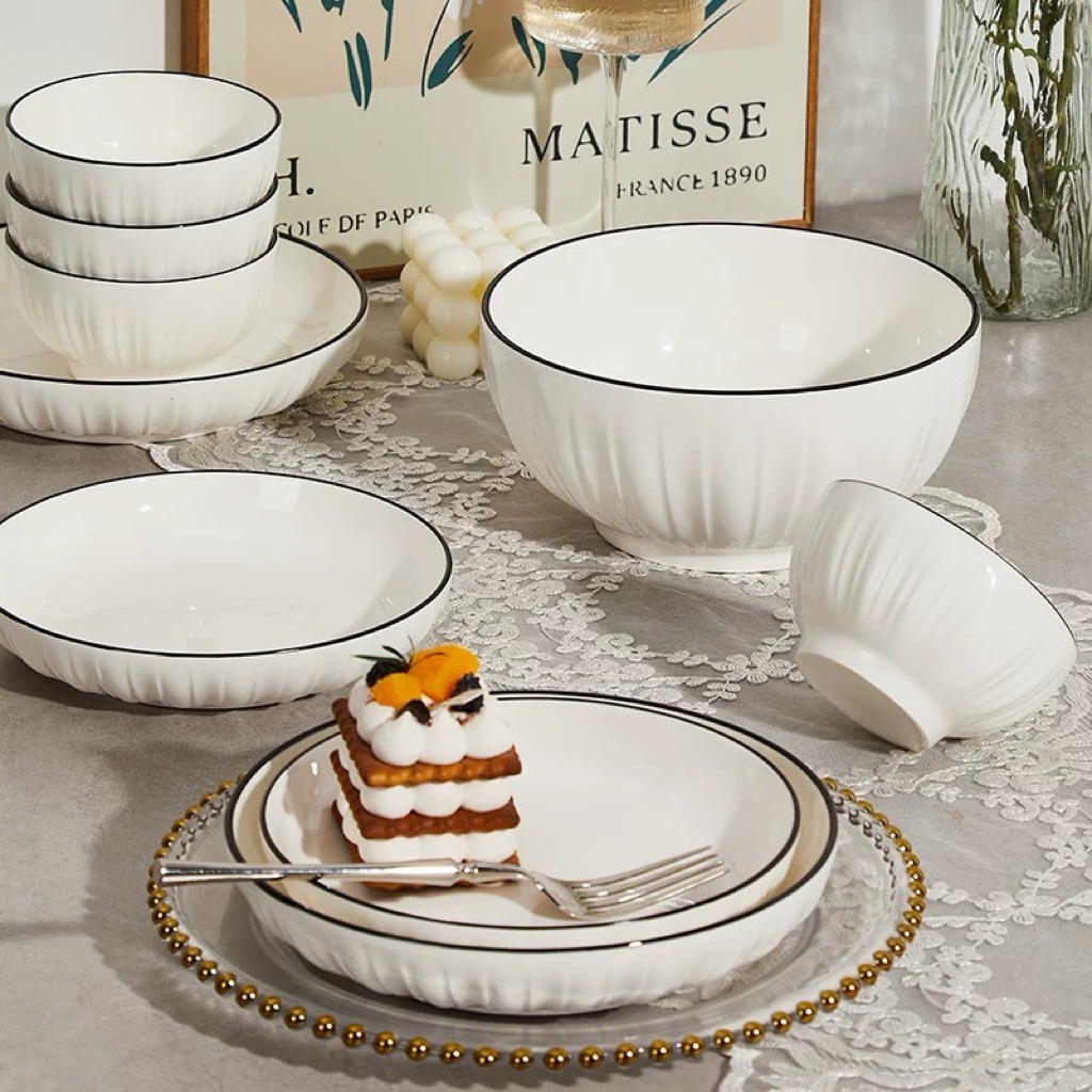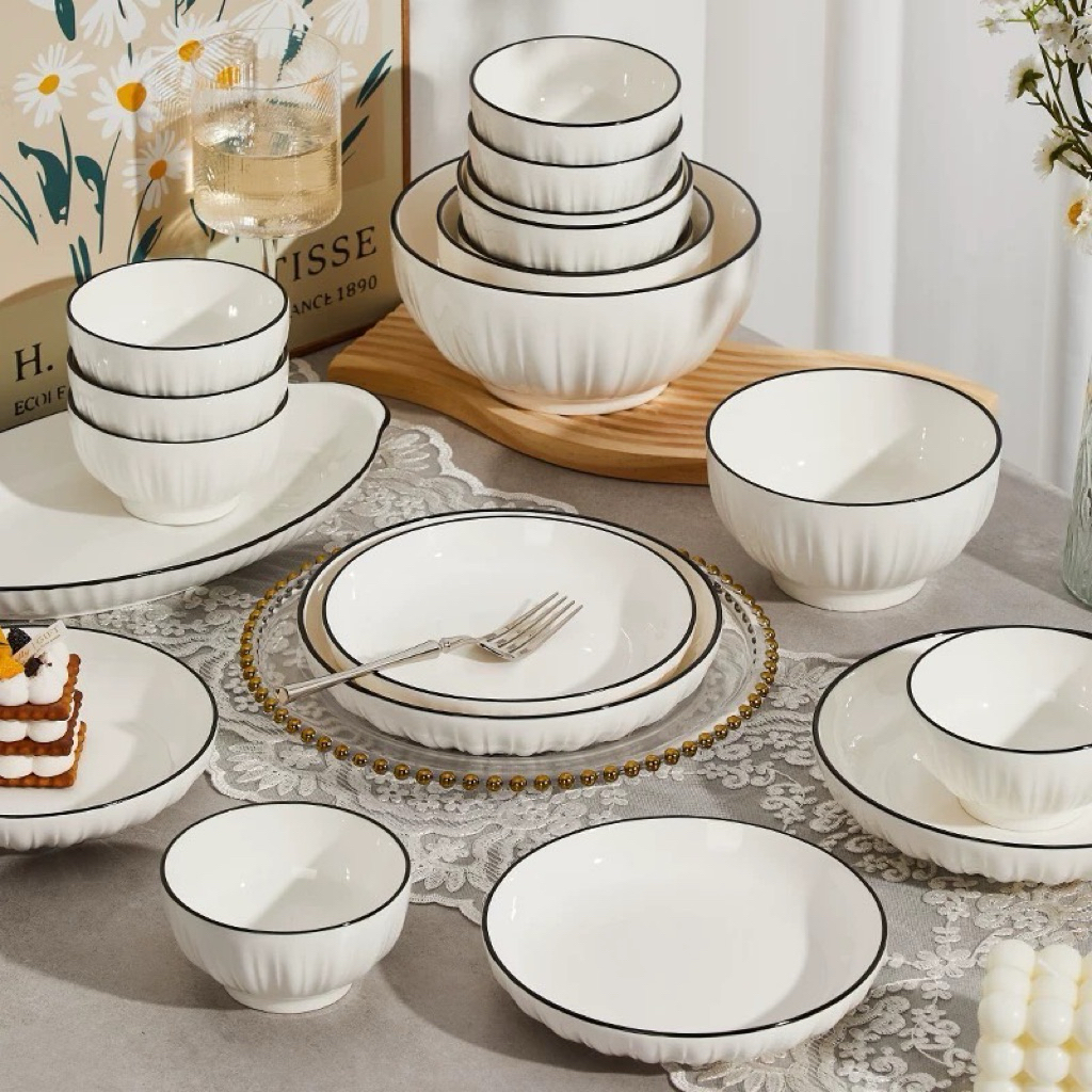 ถ้วย จาน ชาม เซรามิคสีขาวขอบดำ(ฟักทอง) เรียบหรู?️