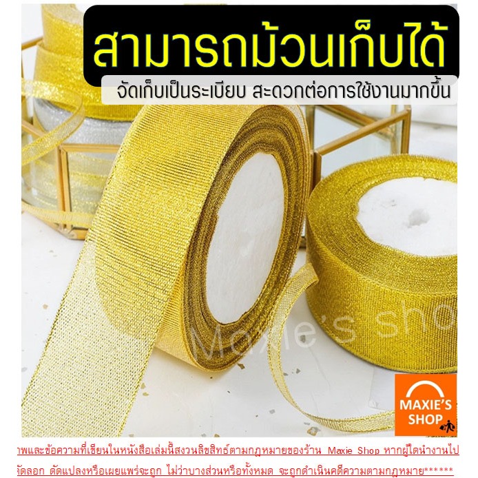?ส่งฟรี? ริบบิ้นเนื้อทราย MAXIE ยาว25หลา (สีเงิน/ทอง) ริบบิ้น ริบบิ้นผ้า ริบบิ้นห่อเค้ก ริบบิ้นห่อของขวัญ ริบบิ้นทำโบว์