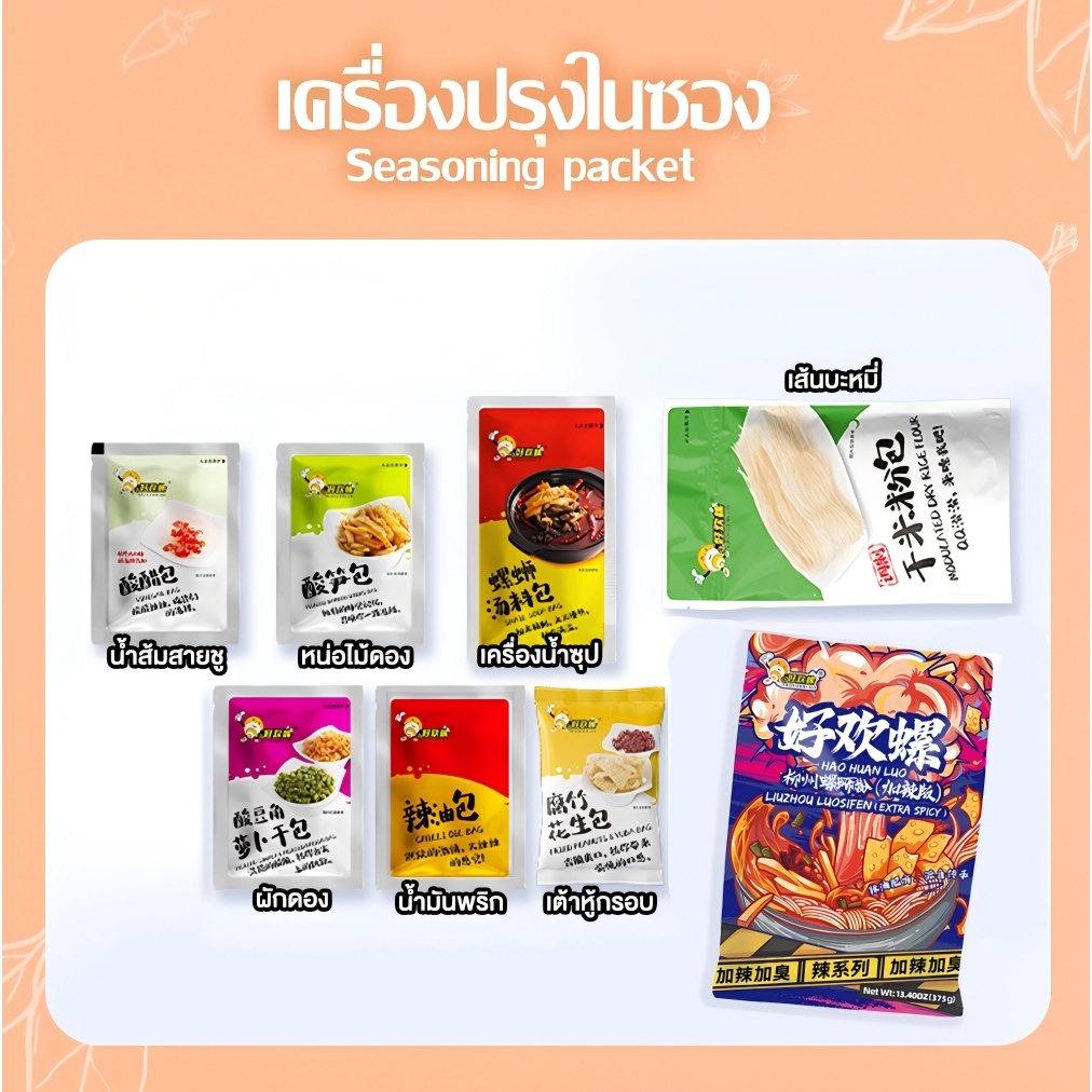Haohuanluo บะหมี่หอยหวานรสชาติต้นตำรับแท้หลิ่วโจว เส้นหนึบ เครื่องเยอะ ซองสีแดงรสเผ็ดพิเศษ อร่อยจัดจ้าน แพ็คสุดคุ้ม