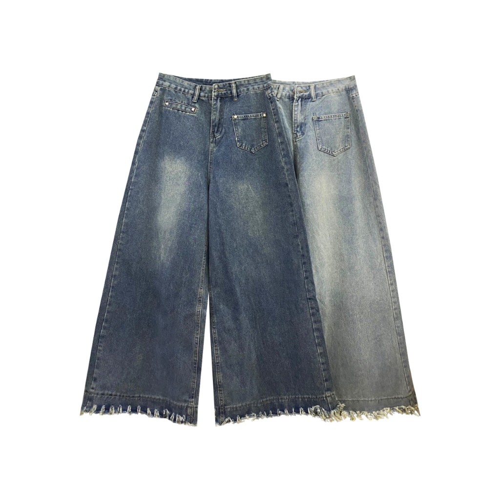 ?ราคาถูกที่สุด?กางเกงยีนส์ขายาวทรงบาน รุ่นชายรุ่ย 2 สี ขากว้างเท่ๆ