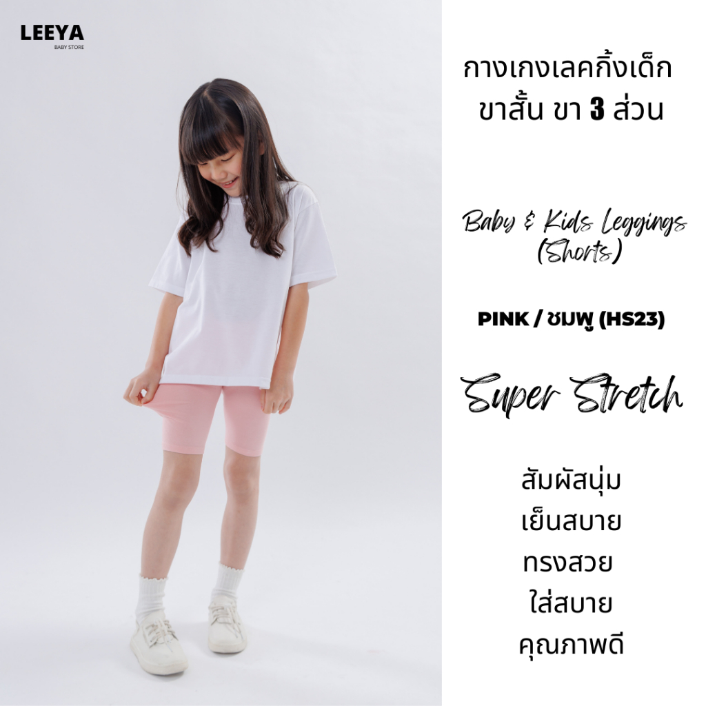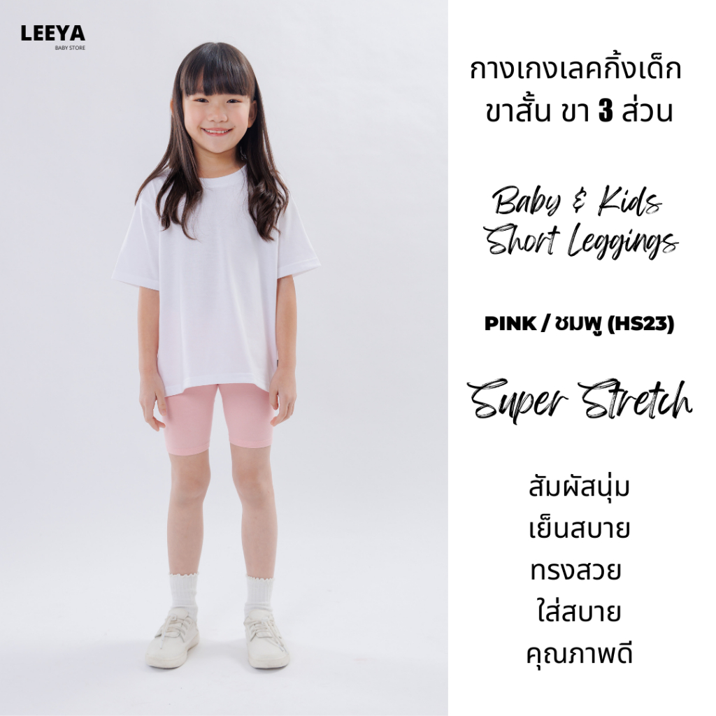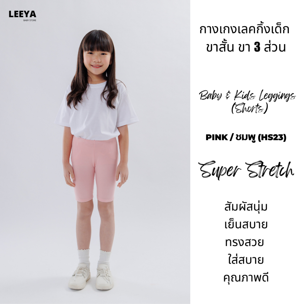กางเกงเลคกิ้งเด็ก ขาสั้น ขา 3 ส่วน HS23 (ชมพู) เนื้อผ้านุ่มยืดยุ่นดีมาก งานเย็บสวย Girl Kids Short Leggings Leeya