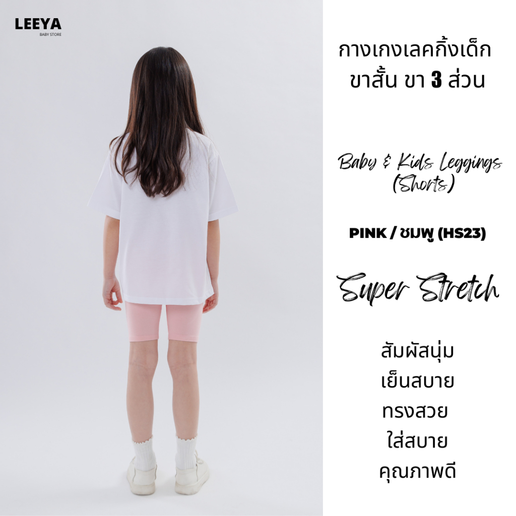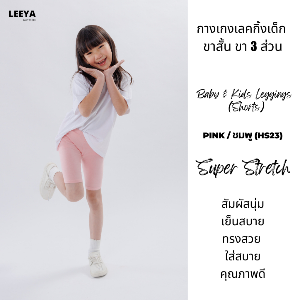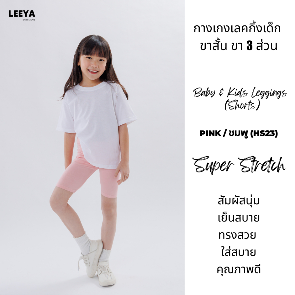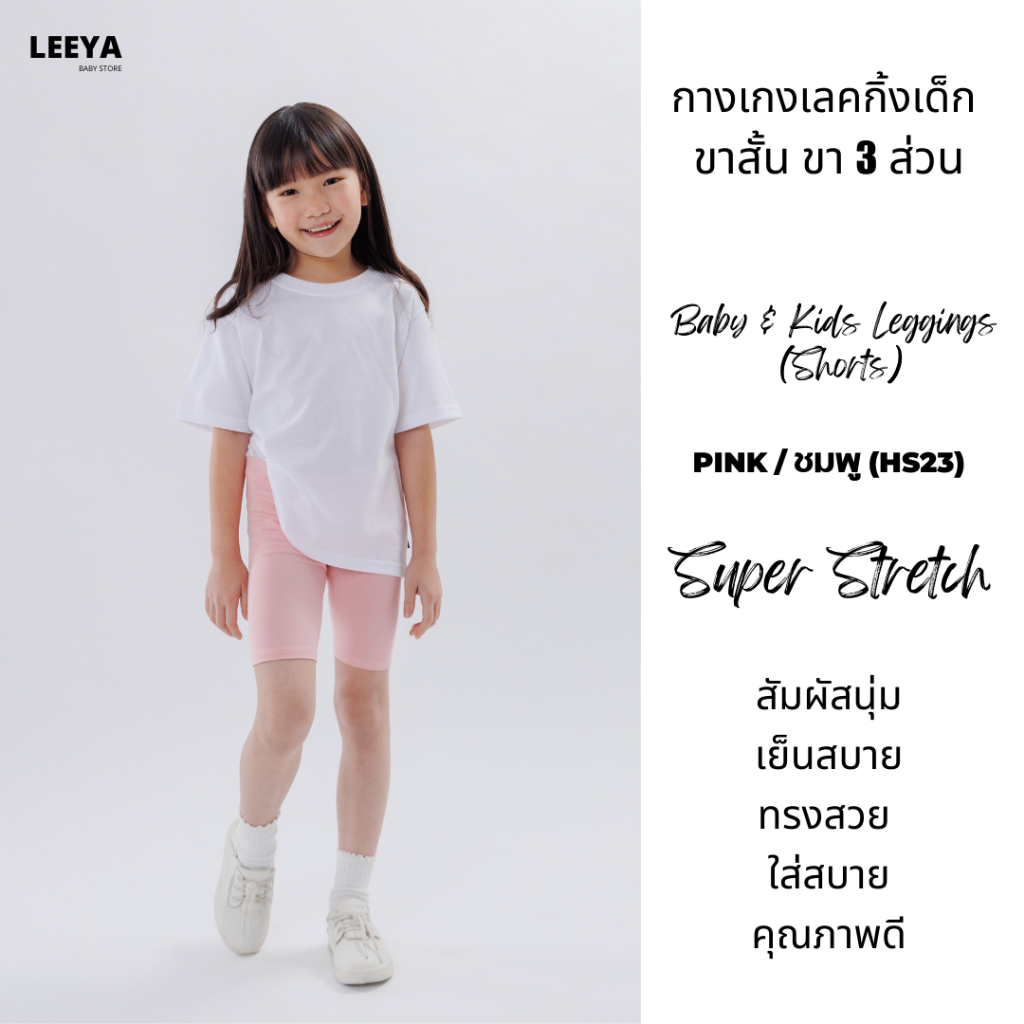 กางเกงเลคกิ้งเด็ก ขาสั้น ขา 3 ส่วน HS23 (ชมพู) เนื้อผ้านุ่มยืดยุ่นดีมาก งานเย็บสวย Girl Kids Short Leggings Leeya