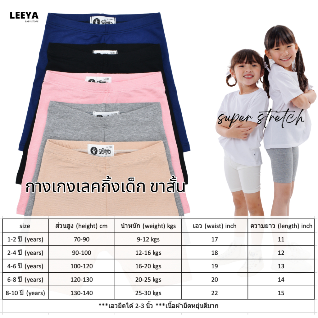 กางเกงเลคกิ้งเด็ก ขาสั้น ขา 3 ส่วน 100% Cotton Rayon สีพื้น