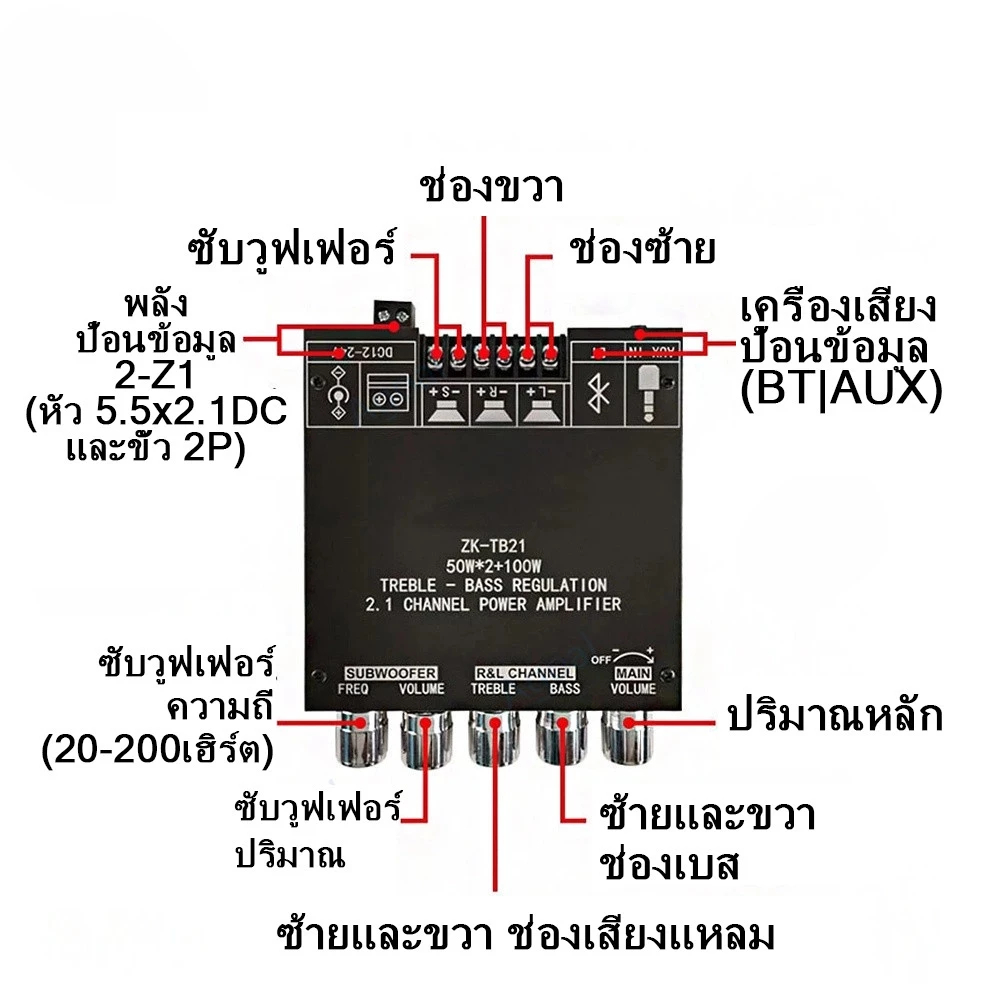 ✅พร้อมส่ง แอมป์บลูทูธ ขยายเส ZK-TB21แอมจิ๋ว บลูทู ธ 5.0 ซับวูฟเฟอร์เครื่องขยายเสียง กำลังขับ 2*50W+ซัพ 100W ซิฟ