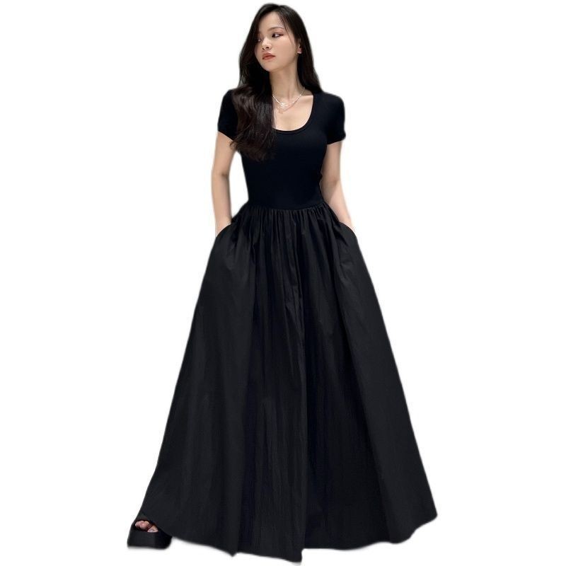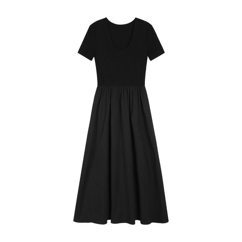 เย็บภาษาฝรั่งเศสคํา Hepburn สไตล์ฤดูร้อนสไตล์ใหม่ชุด Slimmer ดูอารมณ์เอวแคบสีดํา Mid-Le