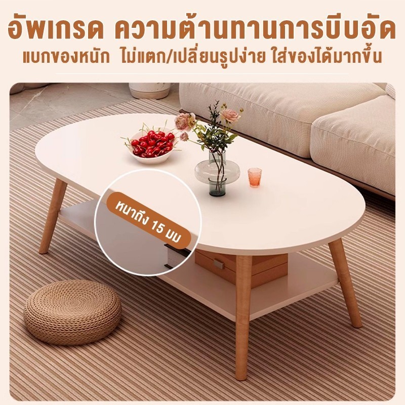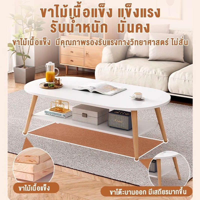 BA โต๊ะห้องรับแขก 2 ชั้น โต๊ะกลางโซฟา 120/100/80cm โต๊ะกาแฟ สไตล์โมเดิร์น ผลิตจากไม้เเท้ เเข็งเเรงทนทาน