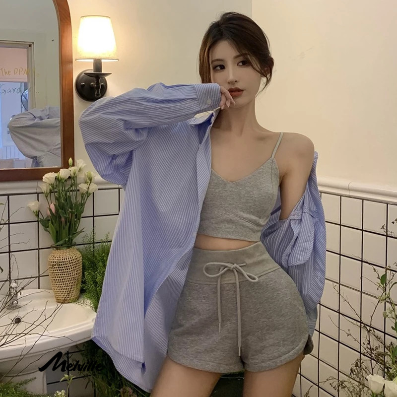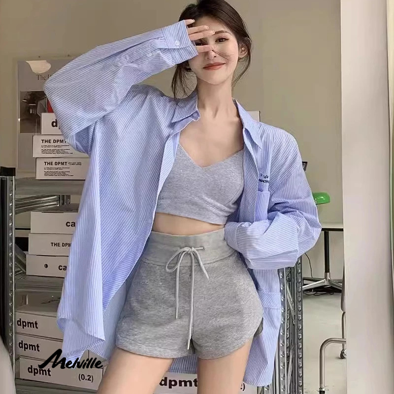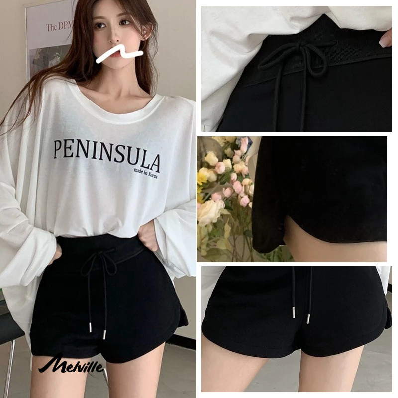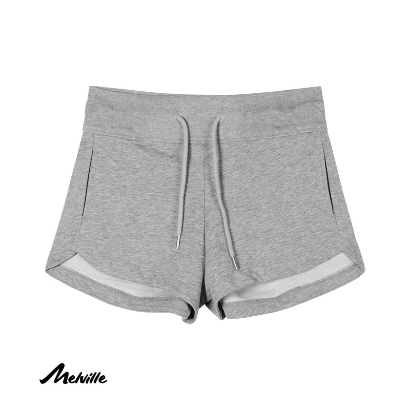 สีเทากีฬากางเกงขาสั้นผู้หญิงอเนกประสงค์เอวสูงDrawstringกางเกงขาสั้นขาตรงกางเกงขาสั้นสบายๆ MEL