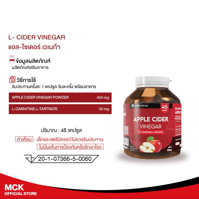 Seres Apple Cider Vinega แอปเปิ้ลไซเดอร์ ลดความอยากอาหาร คุมหิว อิ่มเร็ว การเผาผลาญ ดูแลระบบขับถ่าย 45 แคปซุล