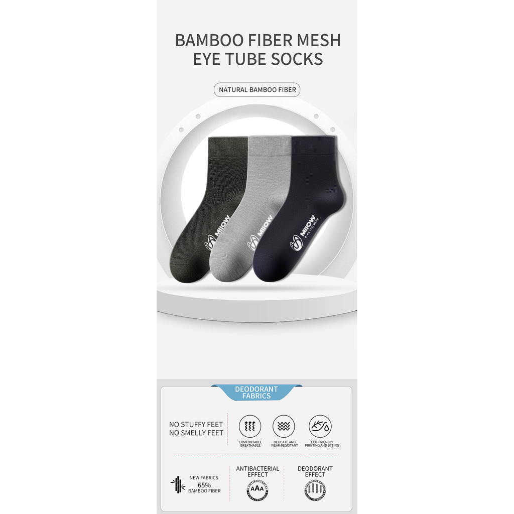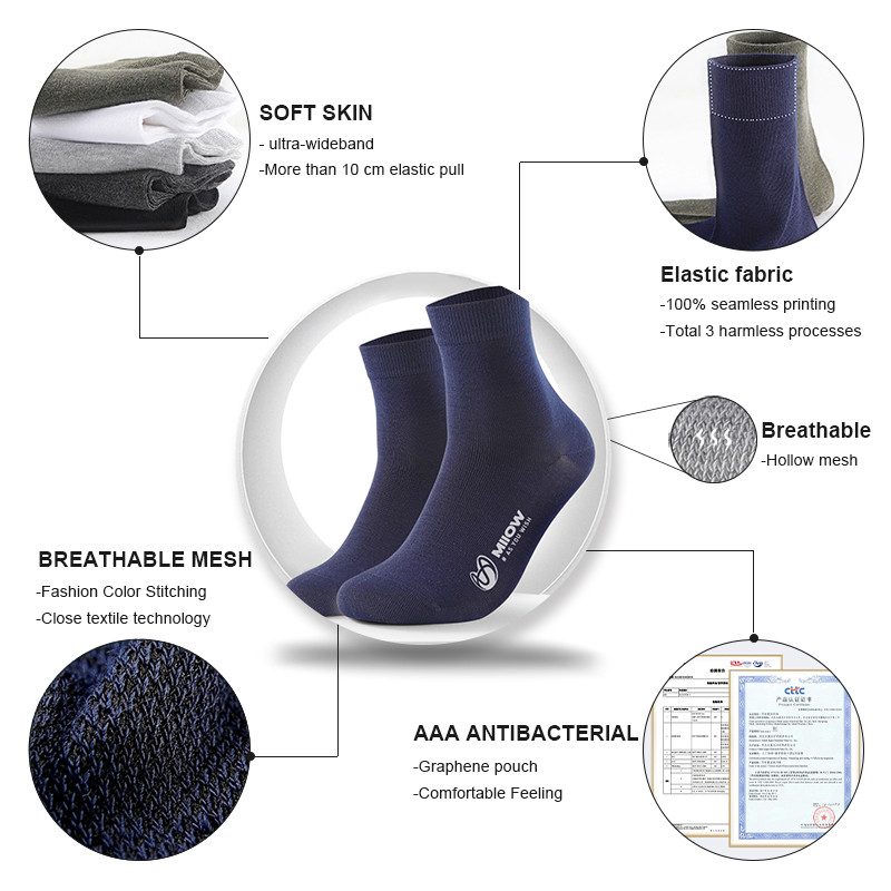 เหมียว 5 คู่/ล็อตผู้ชายถุงเท้าเส้นใยต้านเชื้อแบคทีเรียระบายอากาศสบายๆธุรกิจผู้ชายถุงเท้าหลอดกลางถุงเท้ากลางลูกวัว