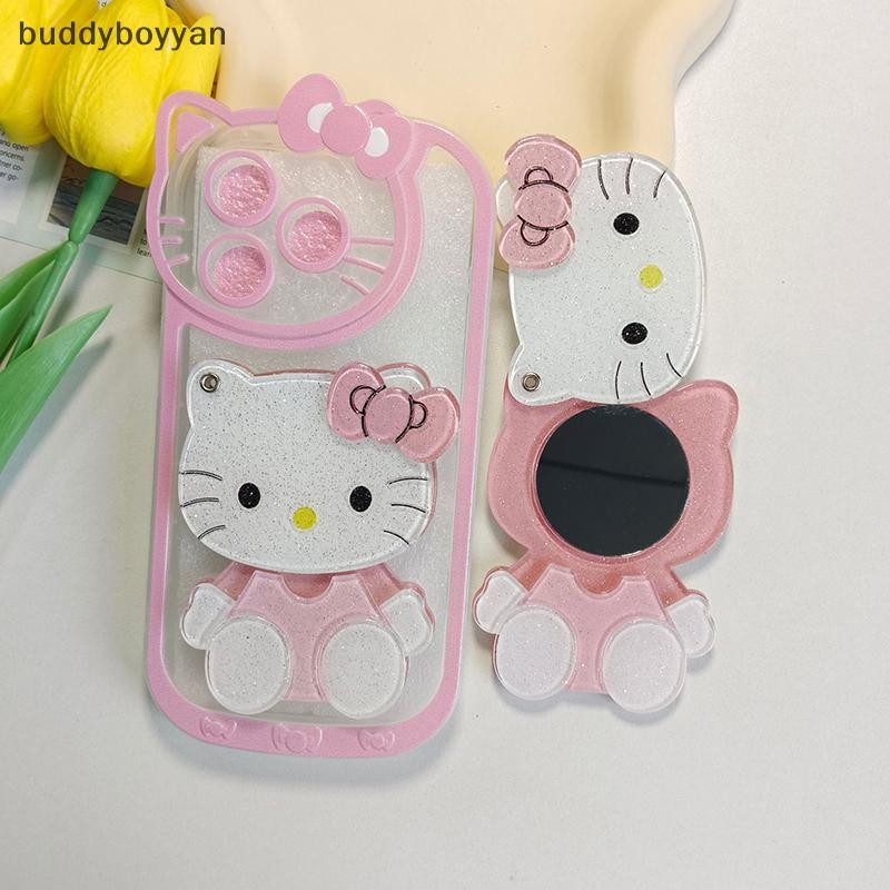 Bbth Kawaii Saniro Hello Kitty กระจกแต่งหน้าพวงกุญแจแบบพกพาเลื่อนกระจก DIY โทรศัพท์มือถือกรณีตกแต่ง Vary