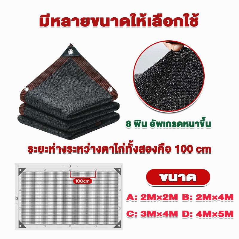 ตาข่ายบังแดด มีตาไก่ ตาข่ายบังแดดกลางแจ้ง ทนทาน กันยูวี ม่านบังแดดและฉนวนกันความร้อนที่ดี ช่วงการใช้งานกว้าง
