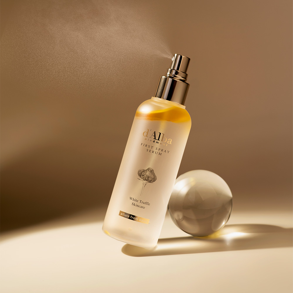 Bestselling First Spray serum ของ Discover d'Alba - เซรั่มชนิดหมอกสุดหรูที่รวบรวมส่วนผสมที่ดีที่สุดจากธรรมชาติเข้ากับวิทยาศาสตร์การดูแลผิวสมัยใหม่ เหมาะสำหรับขั้นตอนการดูแลผิวขั้นแรกหลังทำความสะอาดหรือใช้เป็นผลิตภัณฑ์บำรุงผิวในช่วงเที่ยงวันเซรั่มสเปรย์สอง