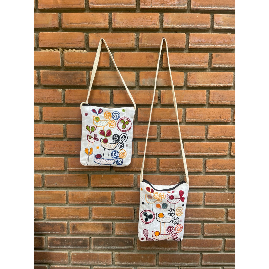 กระเป๋าปักมือ มีลายทั้ง 2 ด้าน สายสะพายยาว