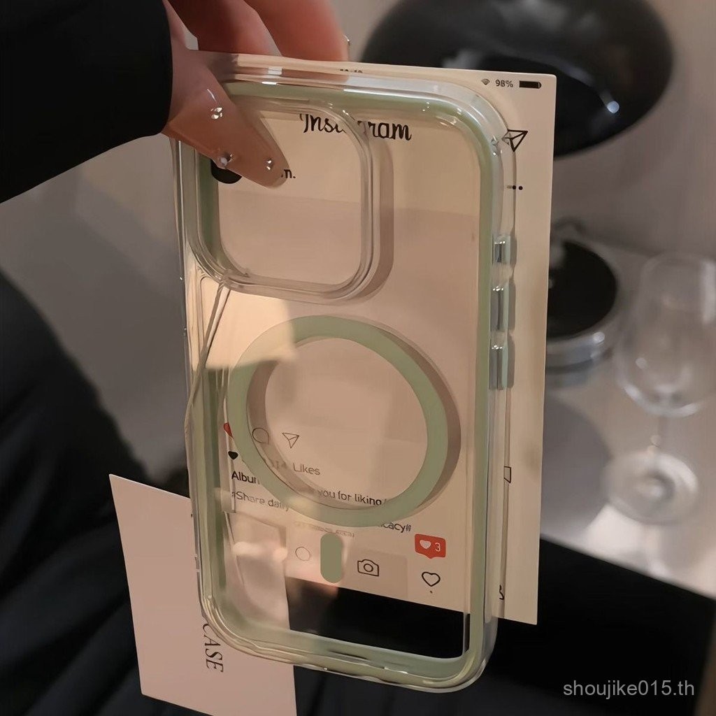 Premium Green Edge 2-in-1 ถุงลมนิรภัยแม่เหล็กสําหรับ IPHONE 14 15 16 13 12 11 11pro 15pro 12pro 15promax 13promax IPHONE CASE IPHONE CASE VTDL