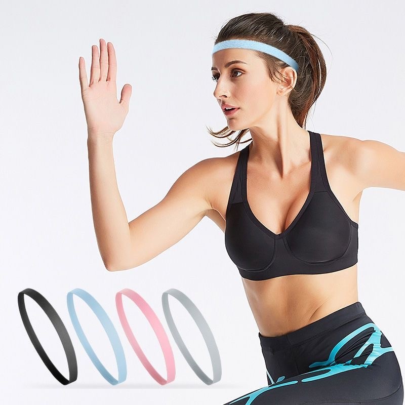 2ชิ้นลื่นซิลิโคนเหงื่อ ไส้ตะเกียง กีฬาคาดศีรษะสําหรับฟิตเนสโยคะวิ่งง่ายออกกําลังกาย หมวก