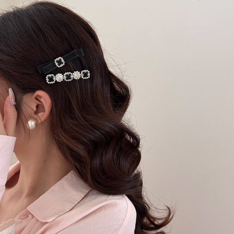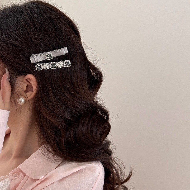 กิ๊บติดผมเกาหลีแบบโบว์ซาตินพร้อมพลอยเทียม สำหรับตกแต่งผมด้านข้าง