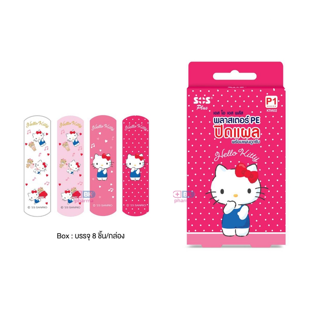 Plaster hello kitty พลาสเตอร์ยา พลาสเตอร์ปิดแผล กันน้ำ SOS ลายคิตตี้ พลาสเตอร์ 1 กล่อง