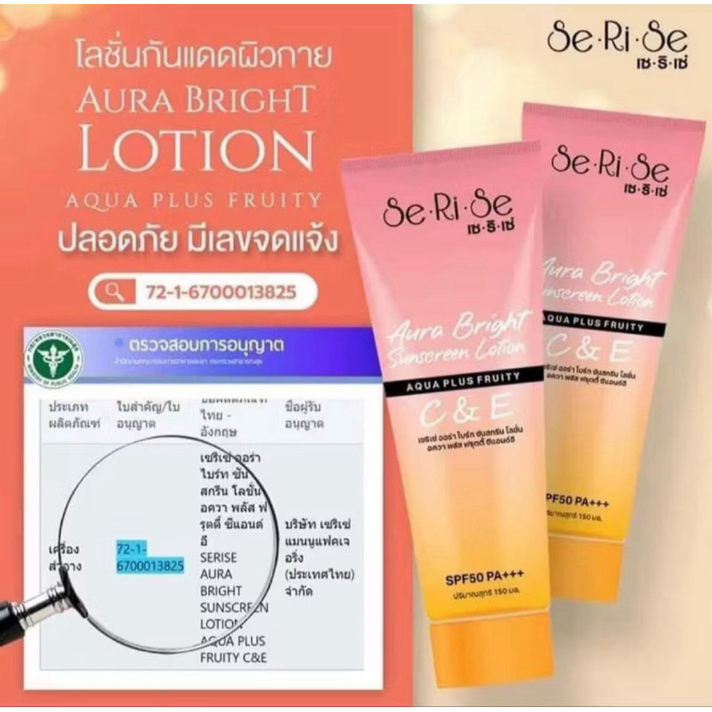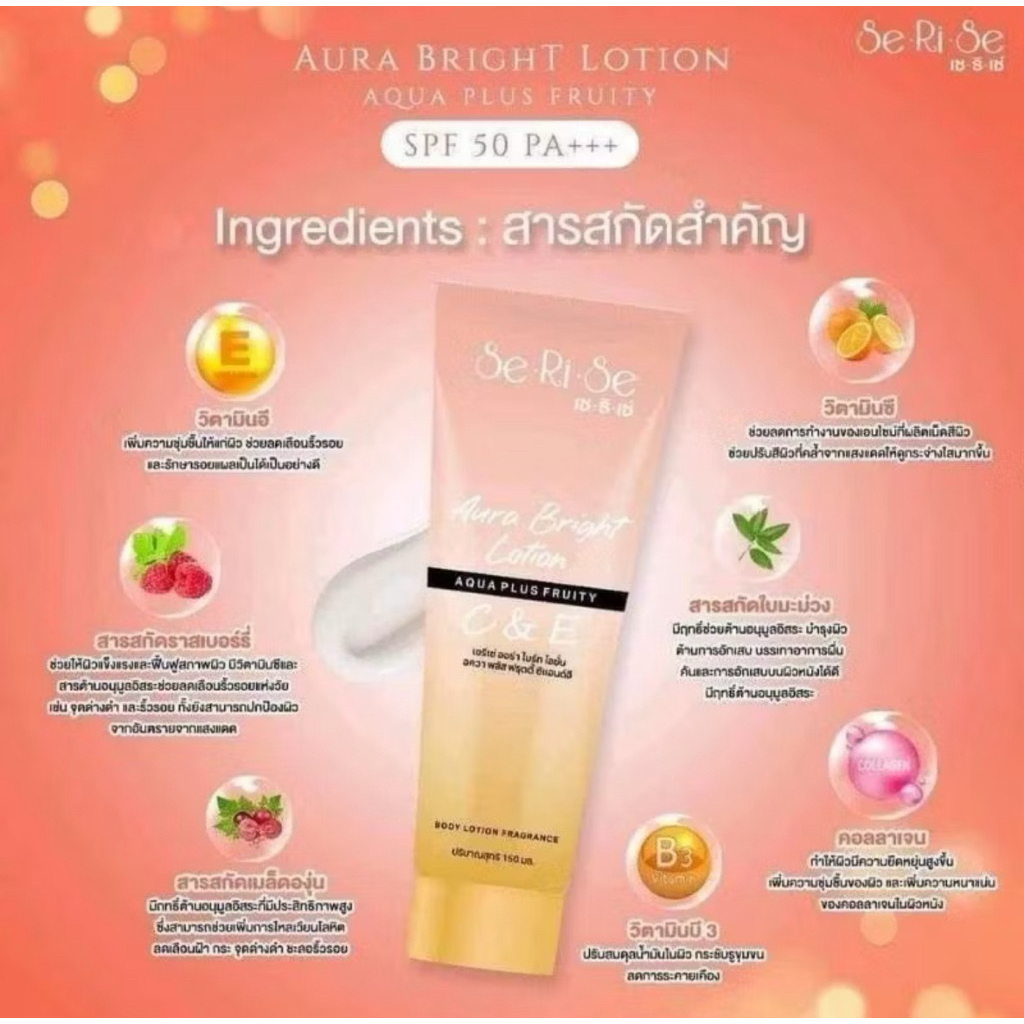 โลชั่นเซริเซ่ SeRiSe Aura Bright C & E Lotion 150ml. โลชั่นกันแดดเซริเซ่ SPF 50 PA+++