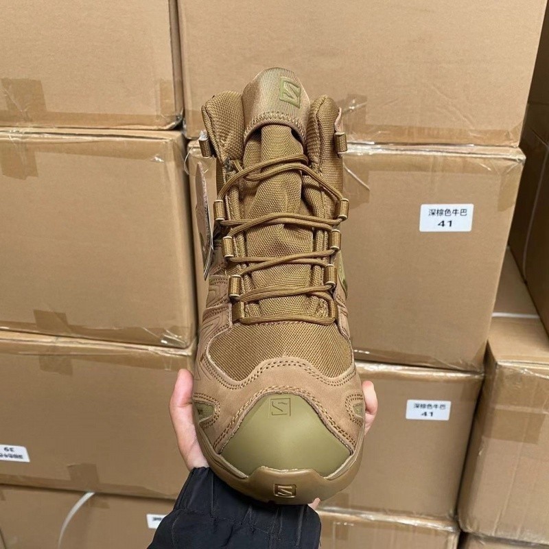 รองเท้าเดินป่ากีฬากลางแจ้งสำหรับผู้ชายมีแผ่นเหล็กหนังวัวน้ำหนักเบาและระบายอากาศได้ดี