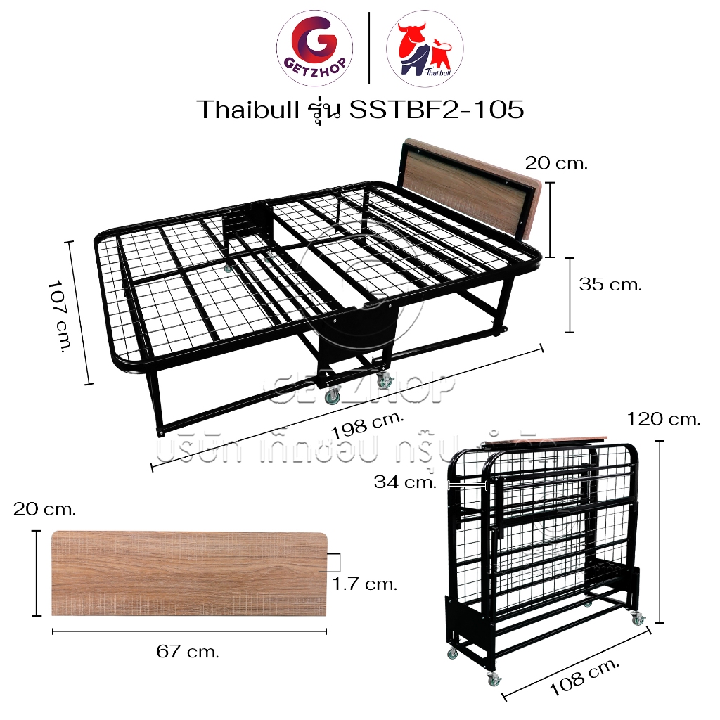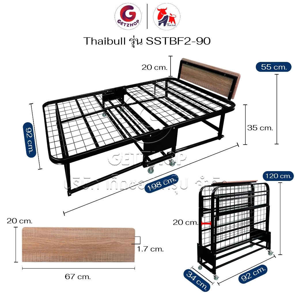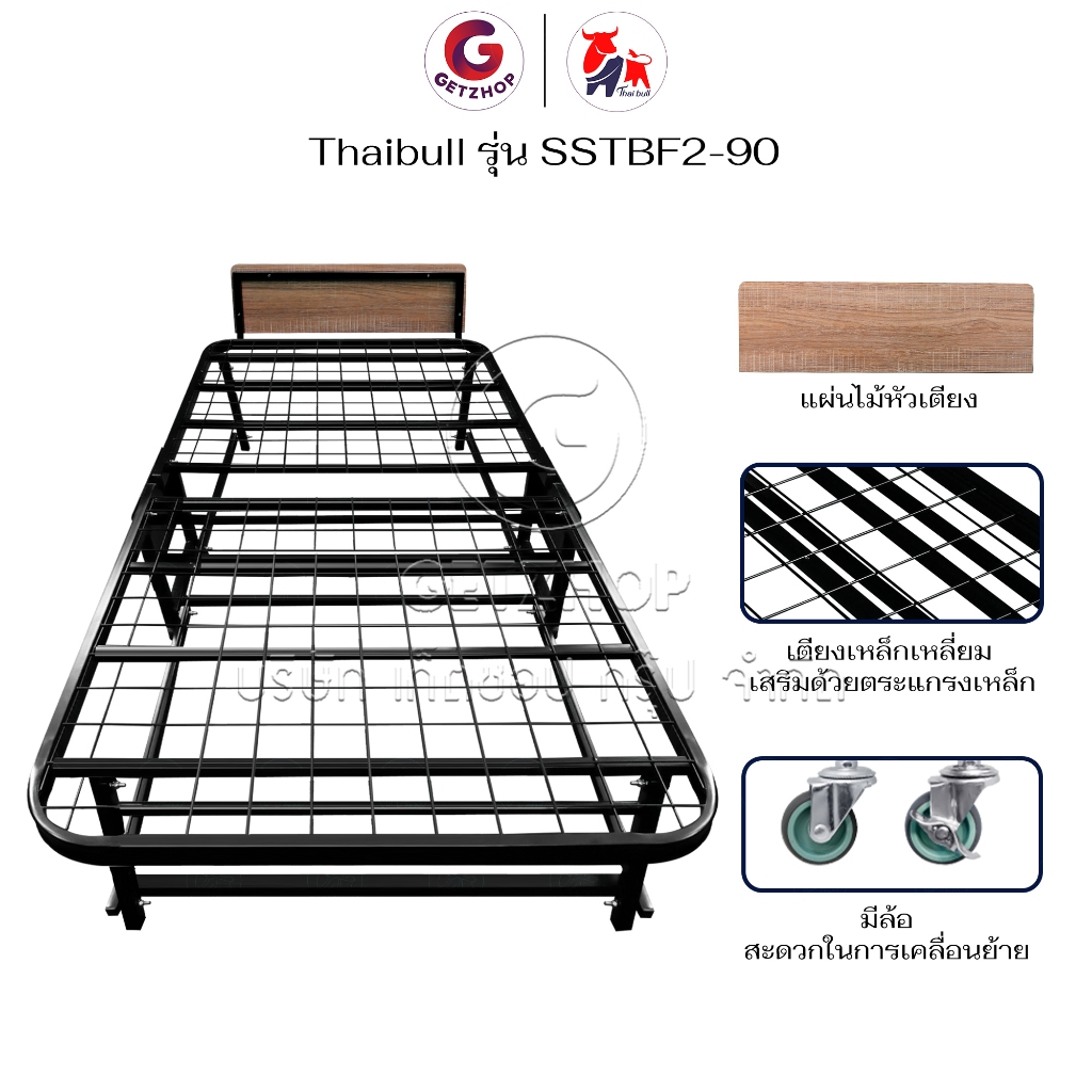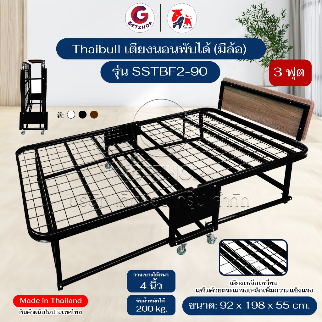 Thaibull เตียงเหล็ก เตียงเสริมโรงแรม เตียง 3.5 ฟุต เหล็กเหลี่ยม พับได้ รุ่น SSTBF2-105 (มีล้อ)