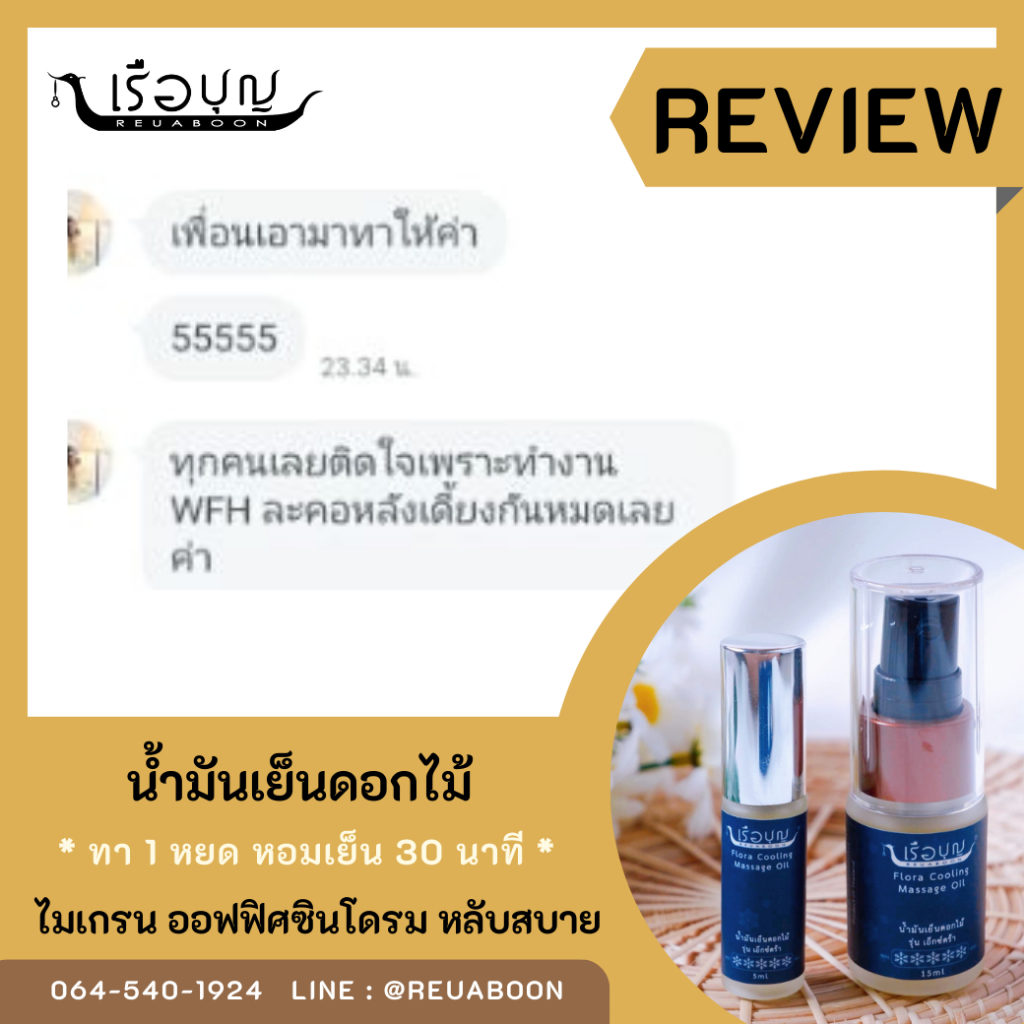 น้ำมันเย็นดอกไม้ รุ่นเอ็กซ์ตร้า 5 มล. (ใช้ทา+ดม : หัวสเปรย์) (REUABOON Flora Cooling Massage Oil : Extra Edition 5 ml)