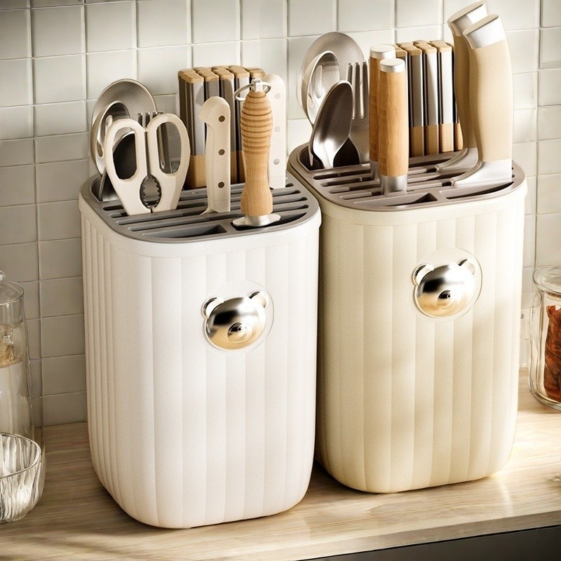 ที่ใส่มีดแบบเรียบง่ายที่ใส่ของใช้ในครัวเรือนมัลติฟังก์ชั่เคาน์เตอร์ครัวตะเกียบกรงมีดทำครัวช้อนกล่องเก็บของชิ้นเดียว