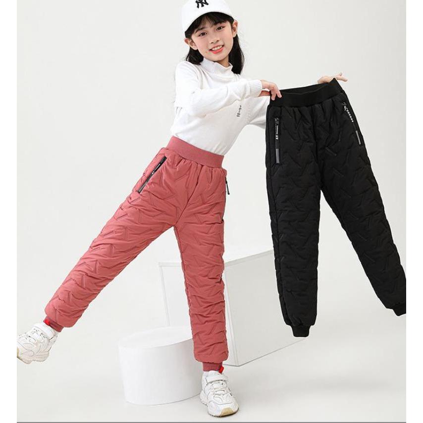 Winter girls’ thick velvet warm sports pants for ages 4-14