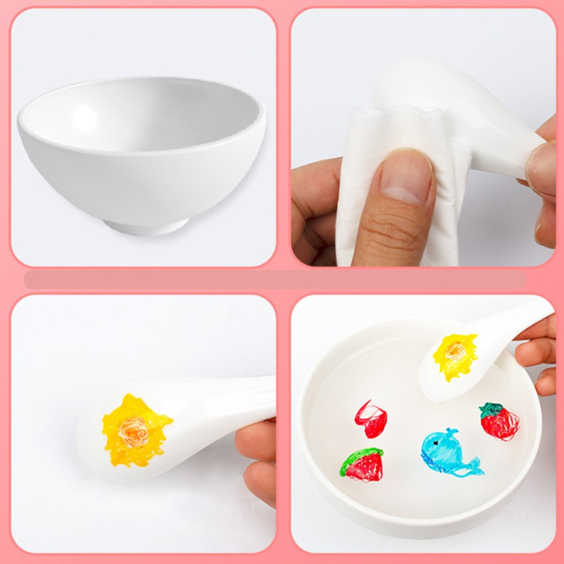 เช็ดช้อนให้แห้ง วาดรูปลงไปแล้วทิ้งให้แห้ง ค่อยๆจุ่มน้ำ ให้สีลอกออก เริ่ดมาก