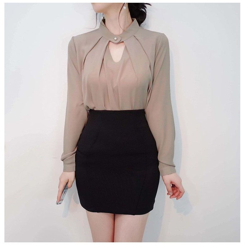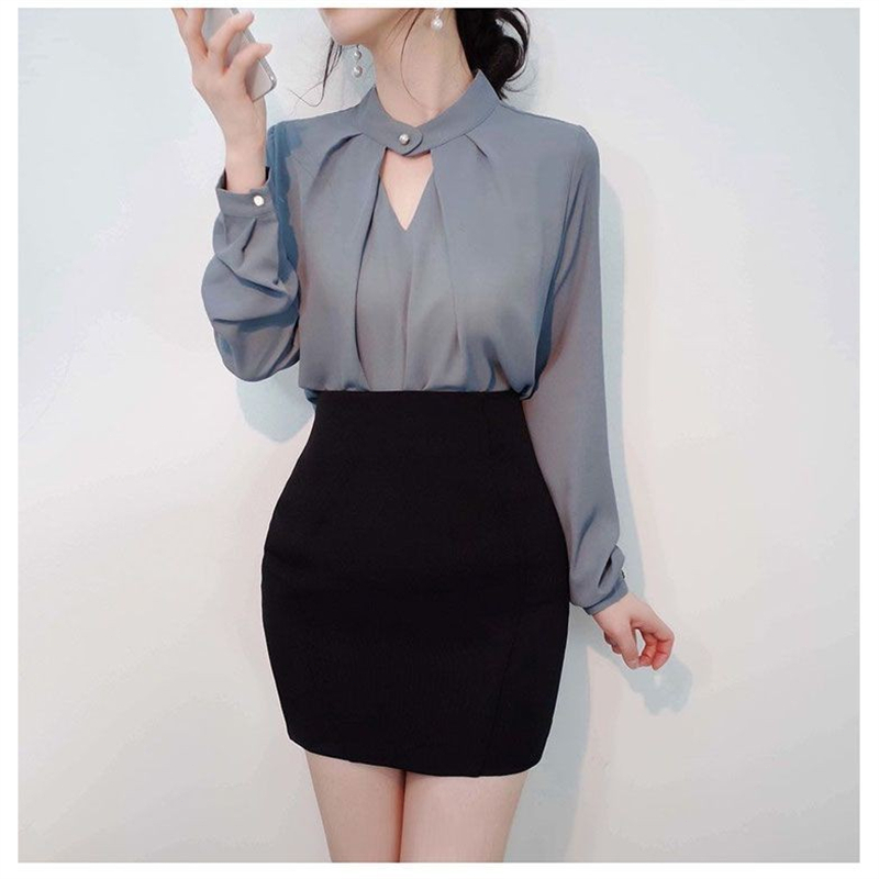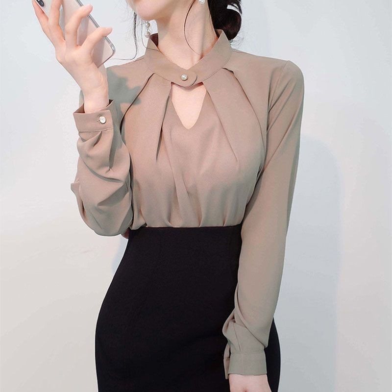 เสื้อเชิ้ตผ้าชีฟองสีขาวแขนยาวผู้หญิง 2025 ใหม่ ไฮเอนด์ เก๋ไก๋ มืออาชีพ เสื้อเชิ้ตคอวี อารมณ์ ฤดูร้อน