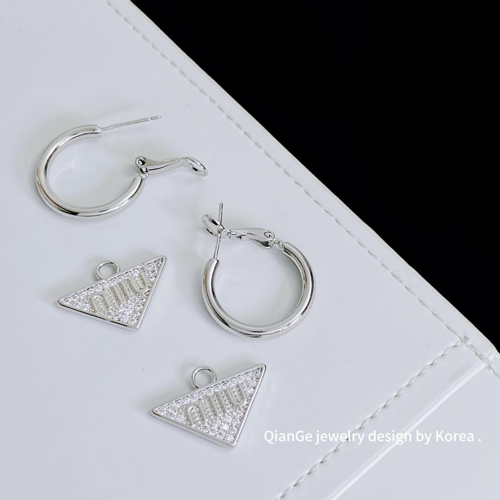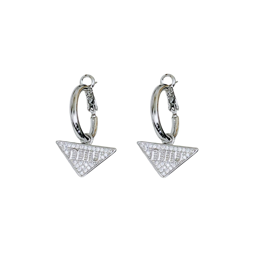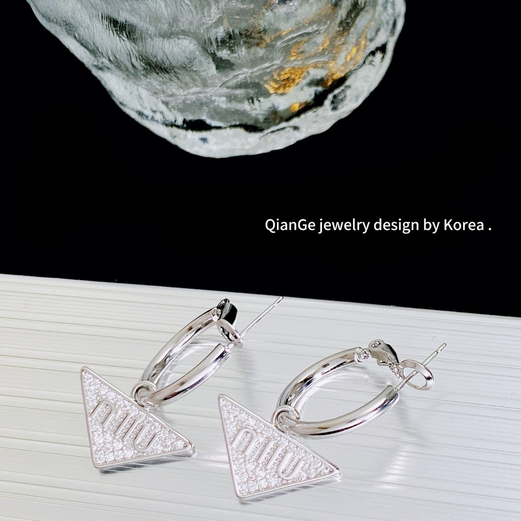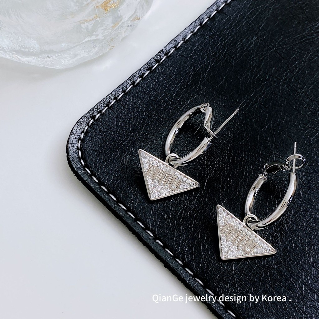 ต่างหู ทองแดงชุบทองคําแท้เพชรเต็มเพทายห่วงสามเหลี่ยมคว่ําต่างหูสุภาพสตรีเครื่องประดับ