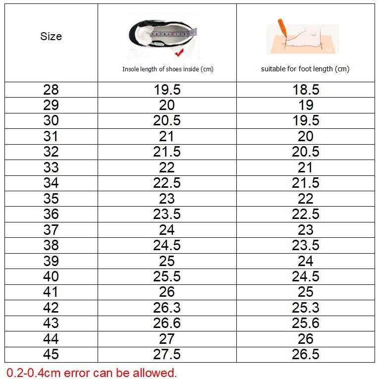 เรามีรูปภาพขนาดของตัวเองสำหรับรองเท้าแต่ละคู่ (อนุญาตให้มีข้อผิดพลาด 0.2-0.4 ซม. 0.2-04 ซม.)