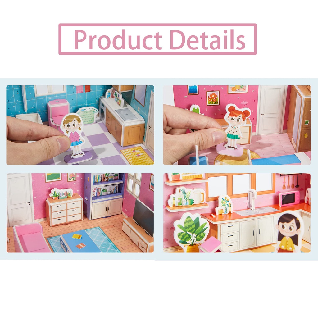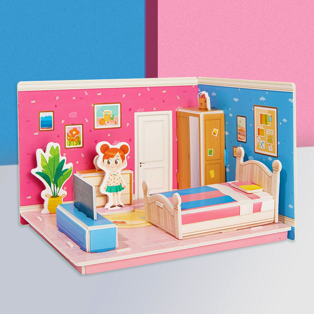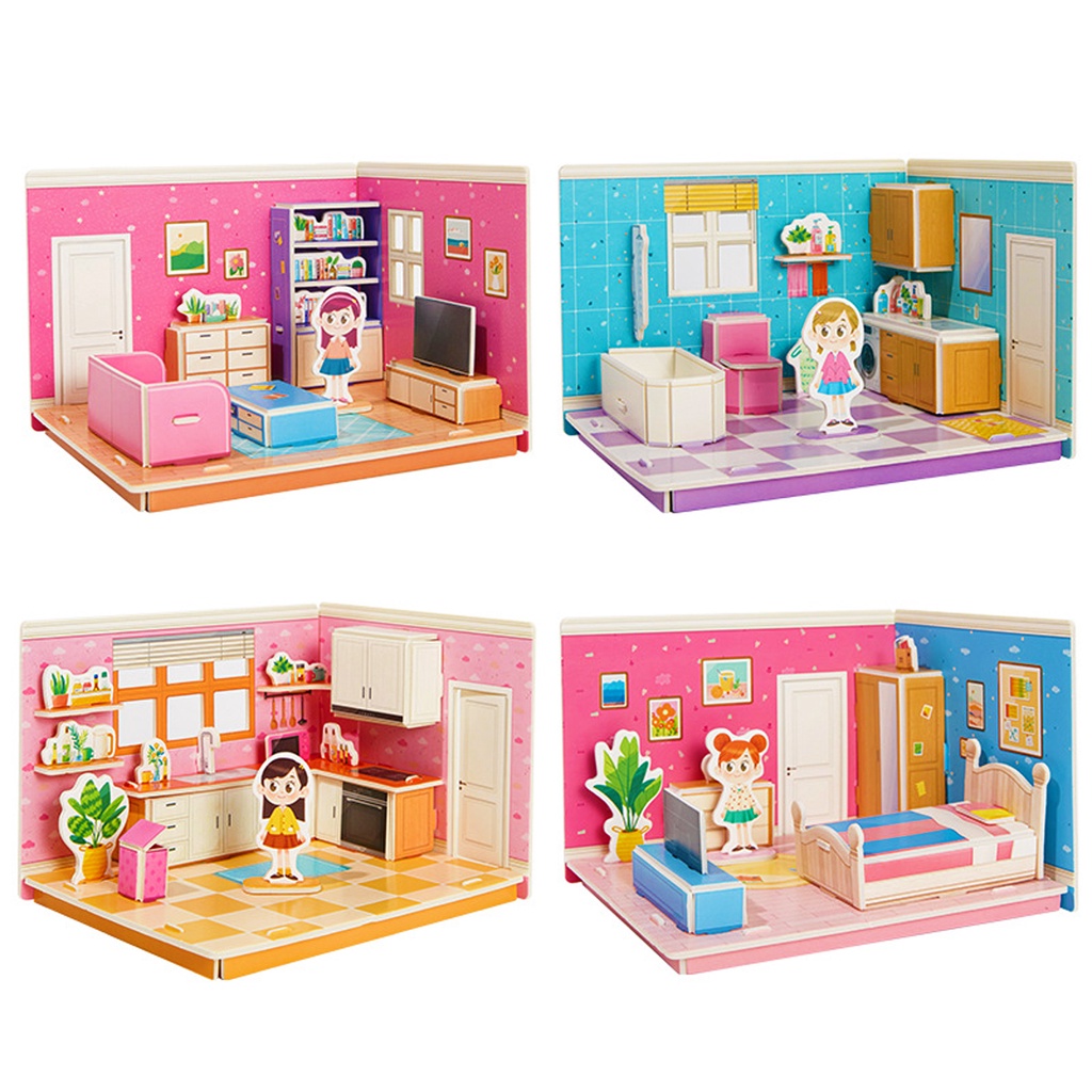 ของเล่นเด็กผู้หญิง 3D จิ๊กซอว์โมเดลบ้าน ปริศนาของเล่น บ้าน Mini ห้องนอน ห้องครัว ห้องนั่งเล่น ห้องน้ำ เด็ก ของเล่นเพื่อการศึกษาแบบโต้ตอบ Montessori ของขวัญเด็กราคาถูก บ้านกระดาษ