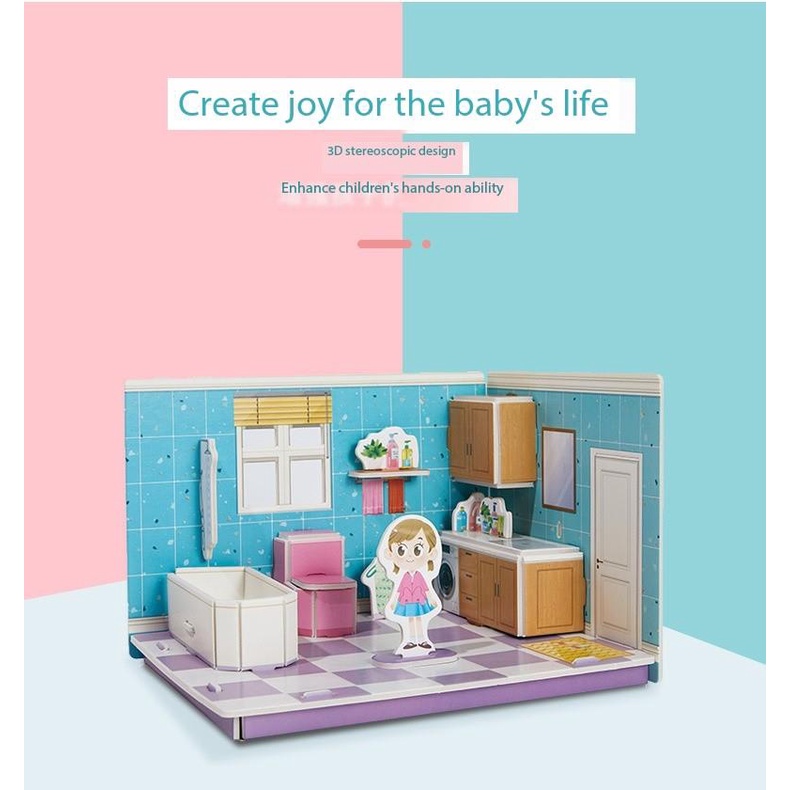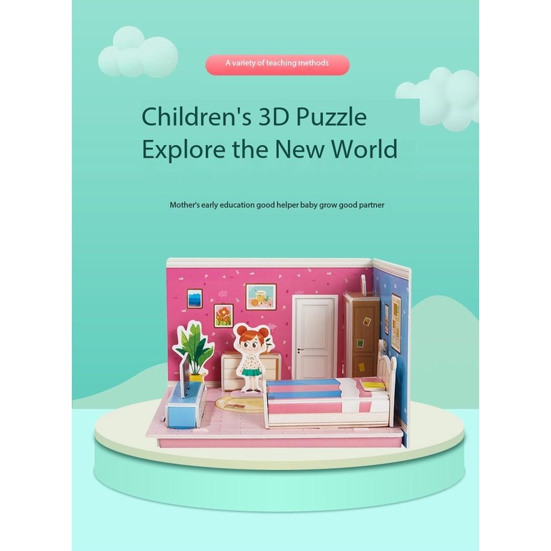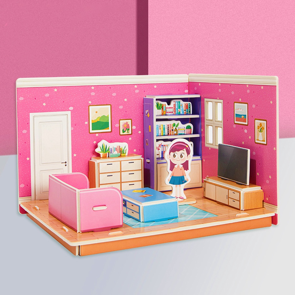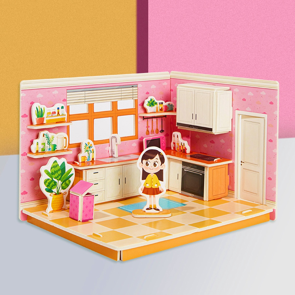 ของเล่นเด็กผู้หญิง 3D จิ๊กซอว์โมเดลบ้าน ปริศนาของเล่น บ้าน Mini ห้องนอน ห้องครัว ห้องนั่งเล่น ห้องน้ำ เด็ก ของเล่นเพื่อการศึกษาแบบโต้ตอบ Montessori ของขวัญเด็กราคาถูก บ้านกระดาษ