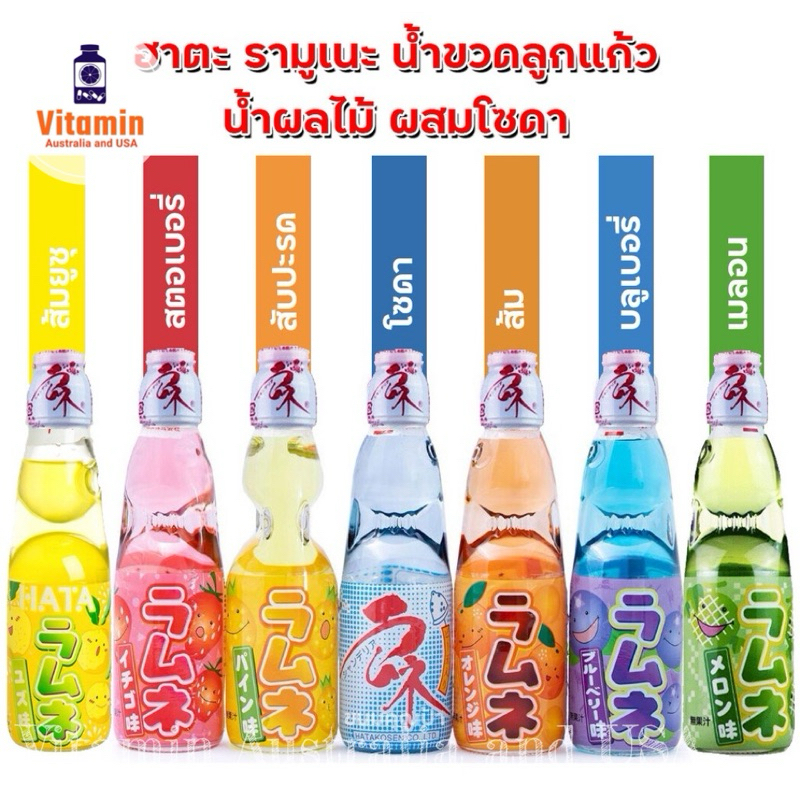 Hatakosen Ramune Soda น้ำขวดลูกแก้วรสผลไม้ผสมโซดา นำเข้าจากญี่ปุ่น