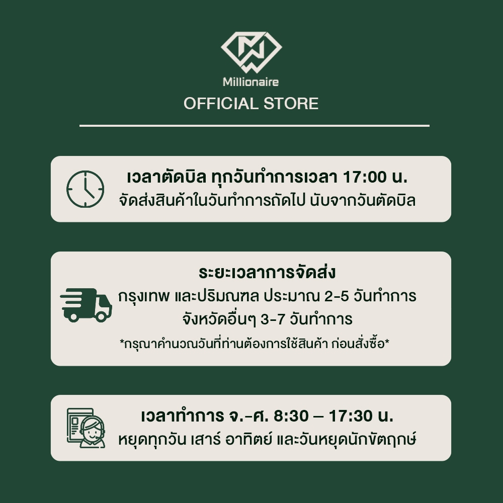 🚚 ใช้เวลาส่งสินค้า 2-7 วัน ขึ้นอยู่กับสินค้าแต่ละประเภท