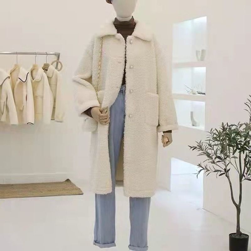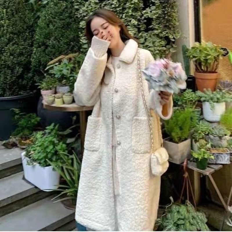 เสื้อโค้ทผ้าวูลฝรั่งเศสสําหรับฤดูหนาวสําหรับผู้หญิงไซส์ใหญ่ (พร้อมกระเป๋า)