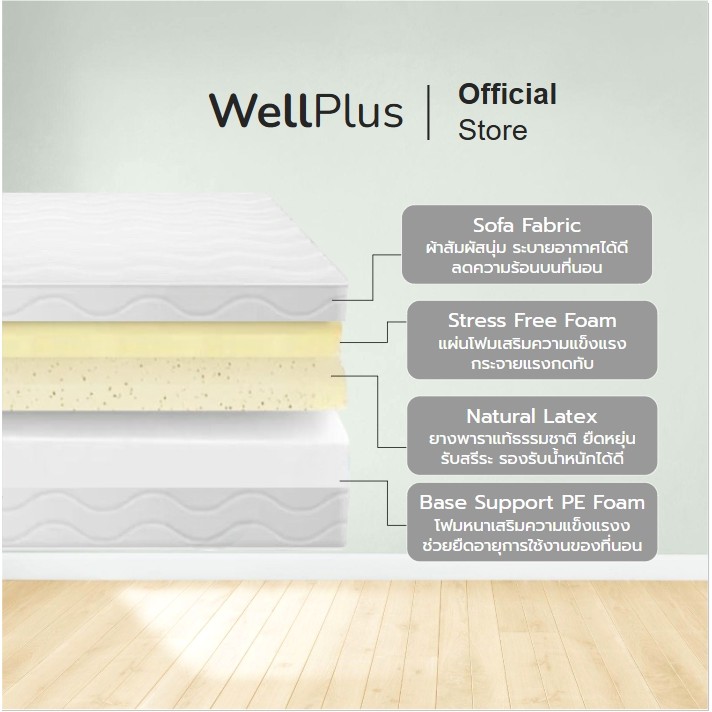 Wellplus ที่นอนยางพาราแท้ สัมผัสแน่น รุ่น Skylar ความหนา 6 นิ้ว