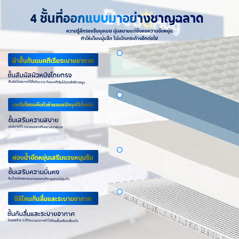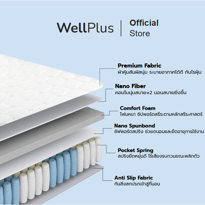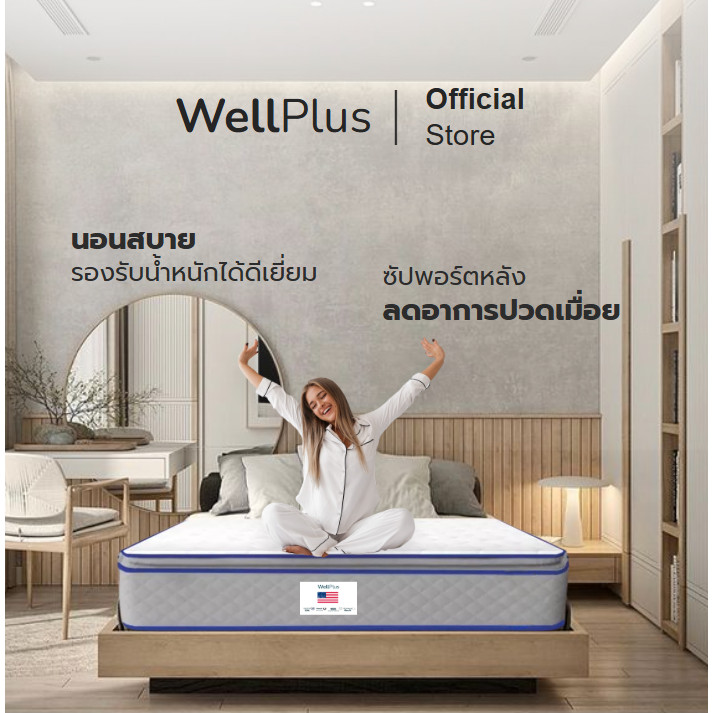 Wellplus ที่นอนยางพาราแท้ สัมผัสแน่น รุ่น Skylar ความหนา 6 นิ้วรายละเอียดสินค้า:วัสดุ: ที่นอนรุ่น Skylar ผลิตจากยางพาราแท้ 100% เพื่อให้การนอนหลับของคุณมีคุณภาพสูงสุดความหนา: 6 นิ้ว เหมาะสำหร